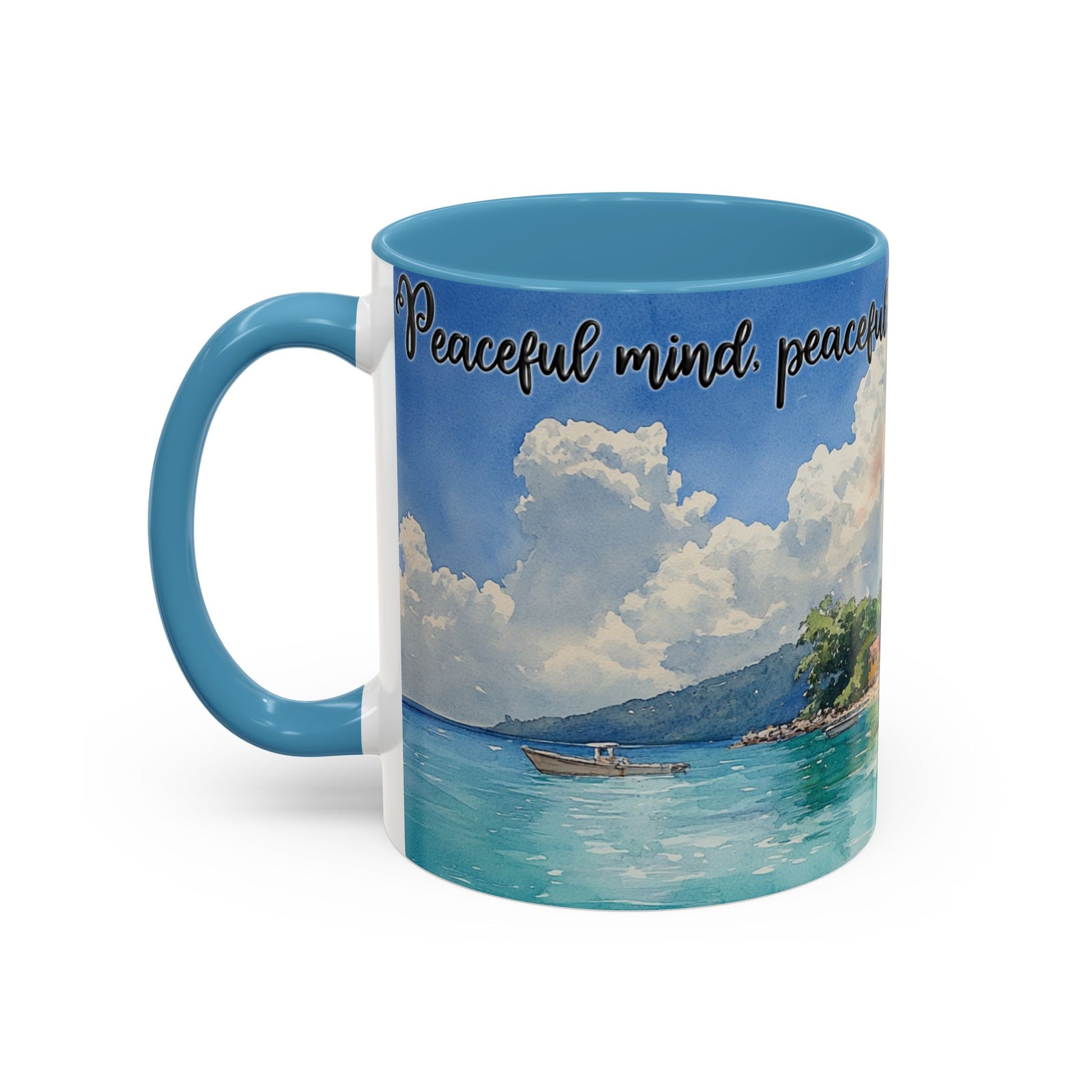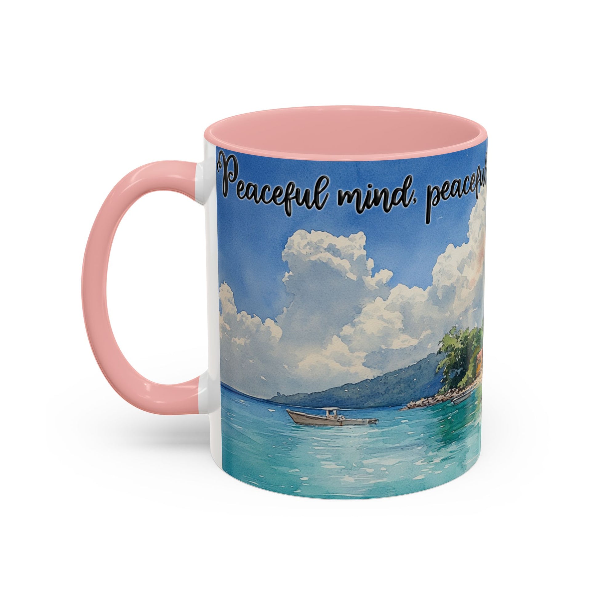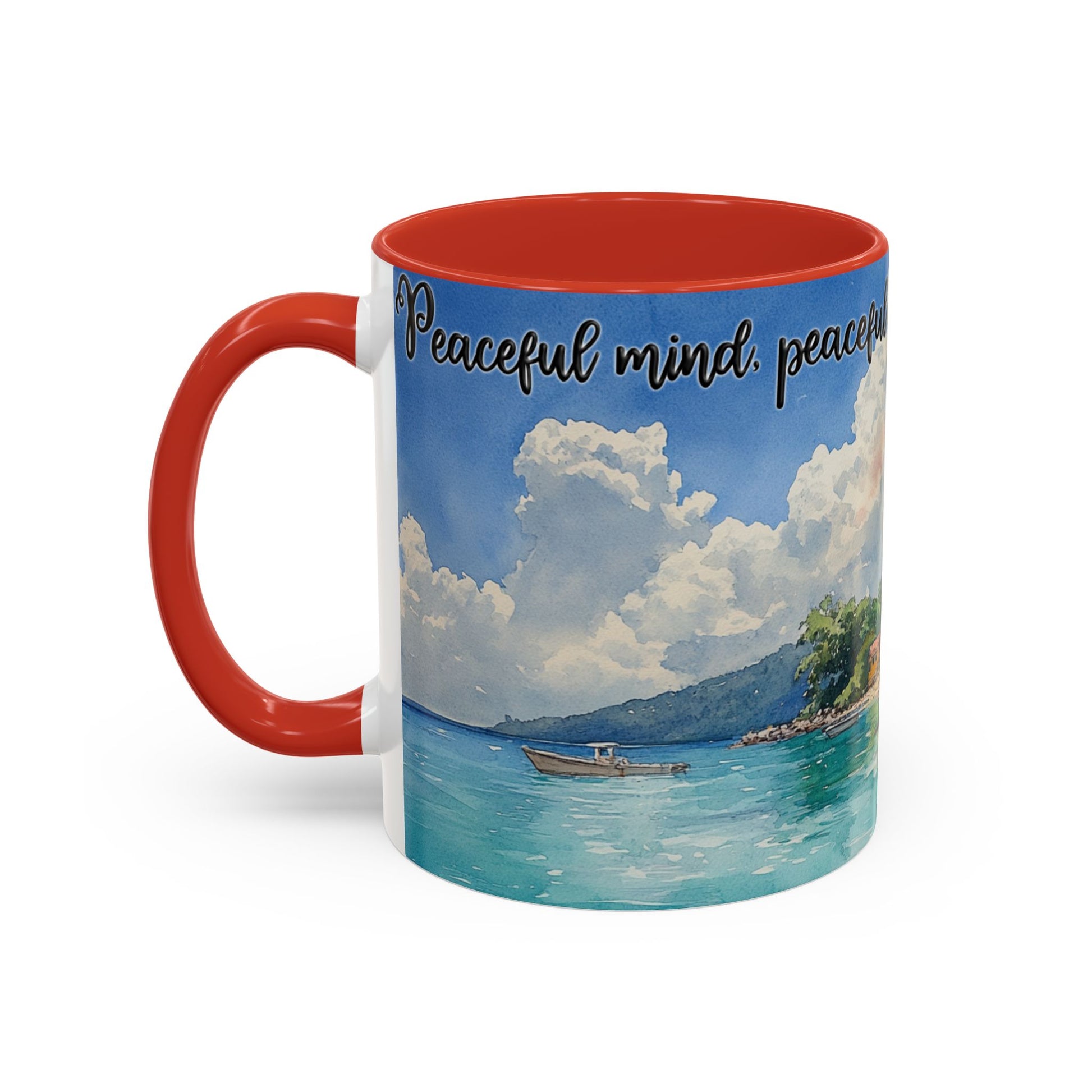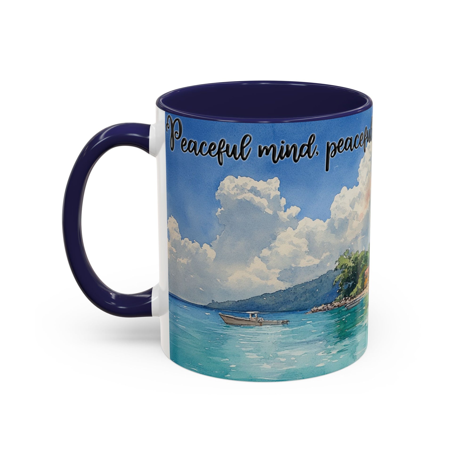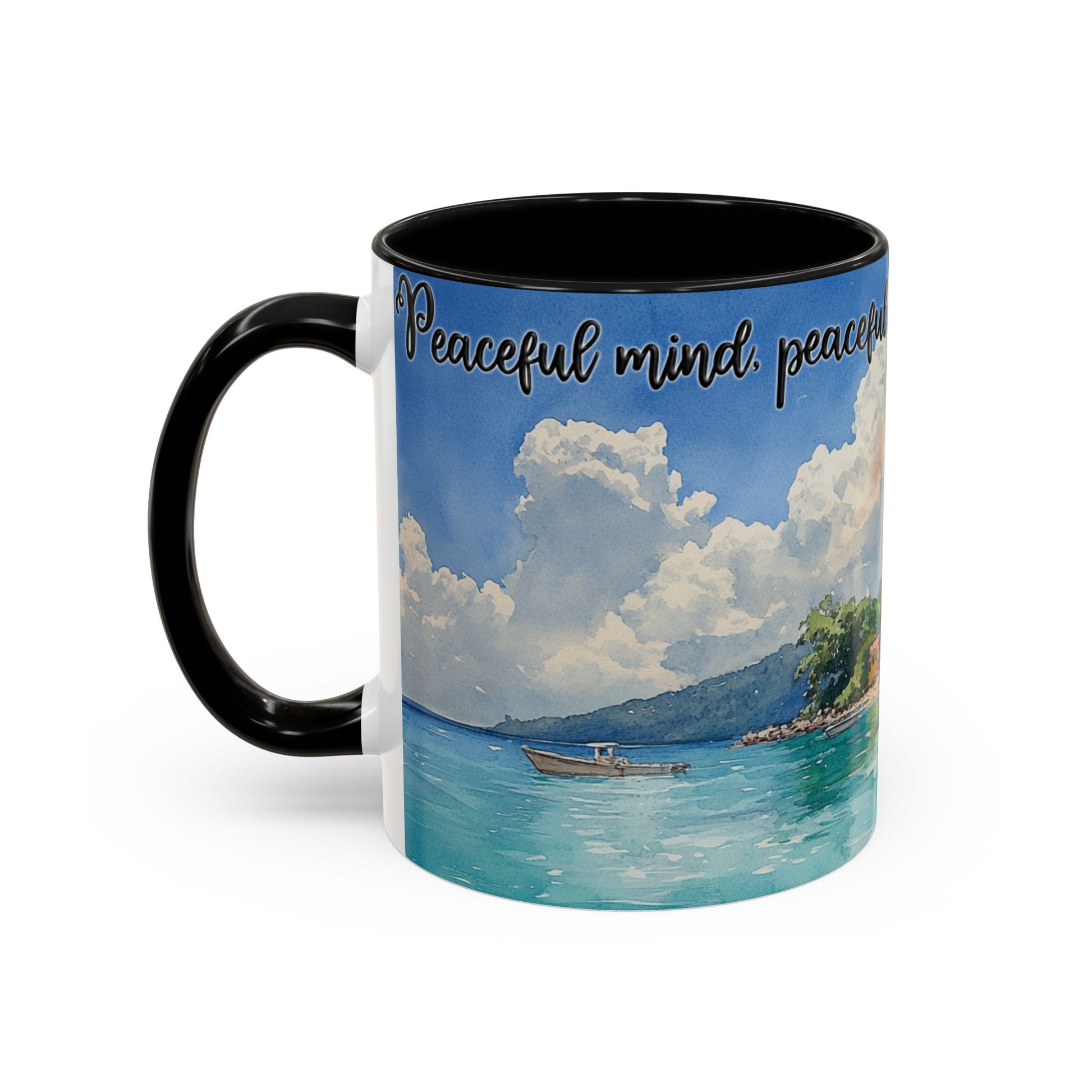 Meet your next favorite morning companion, the accented ceramic mug. This mug brings the perfect blend of style and functionality to elevate your coffee or tea ritual. Available in two generous sizes, 11oz (0.33 l) and 15oz (0.44 l), this mug offers ample space for your favorite brew. Made with white ceramic and sporting a sleek glossy finish with eye-catching contrast, this mug is a bliss both to use and to look at. The ergonomic C-shaped handle provides a comfortable grip, while the lead and BPA-free construction guarantee peace of mind with every sip.