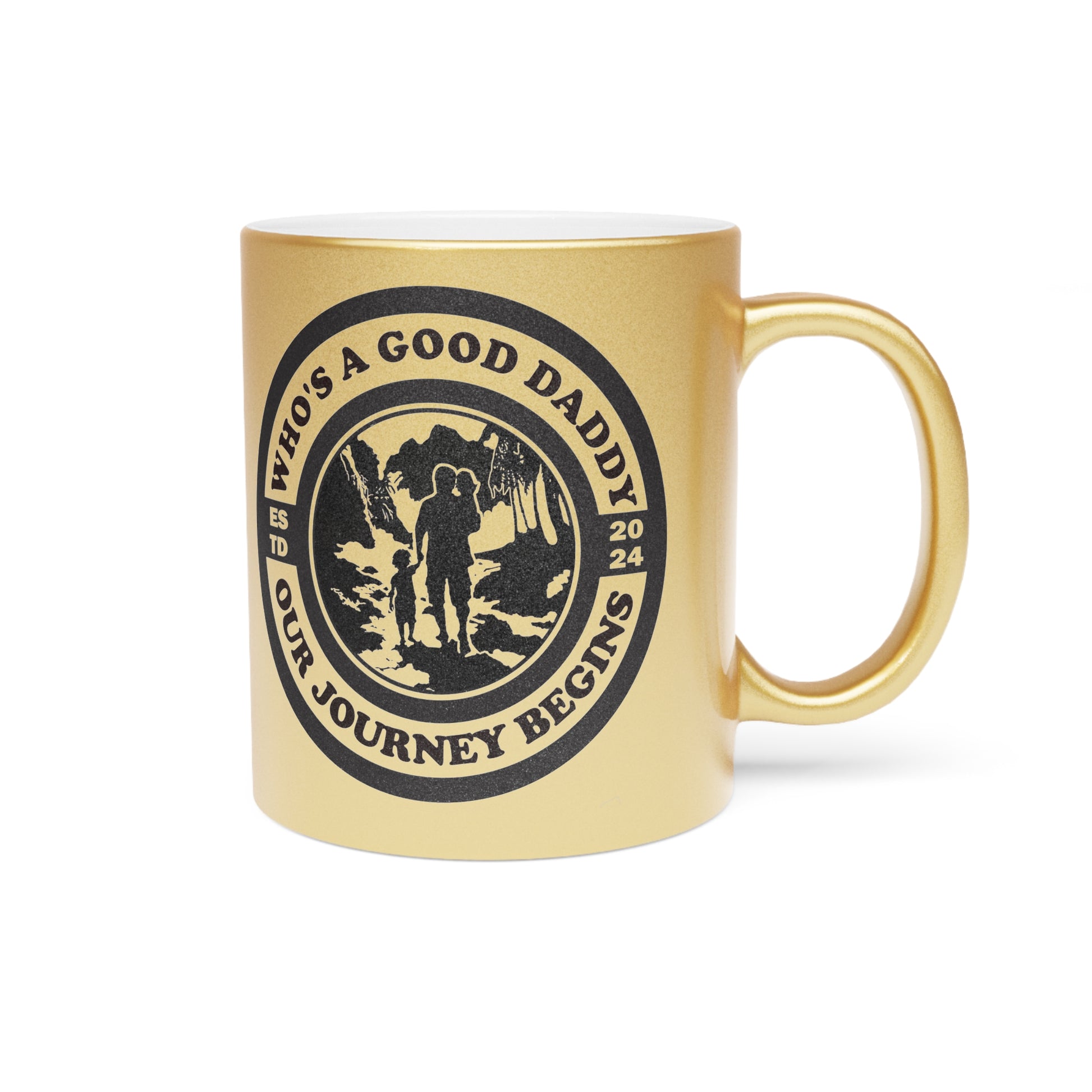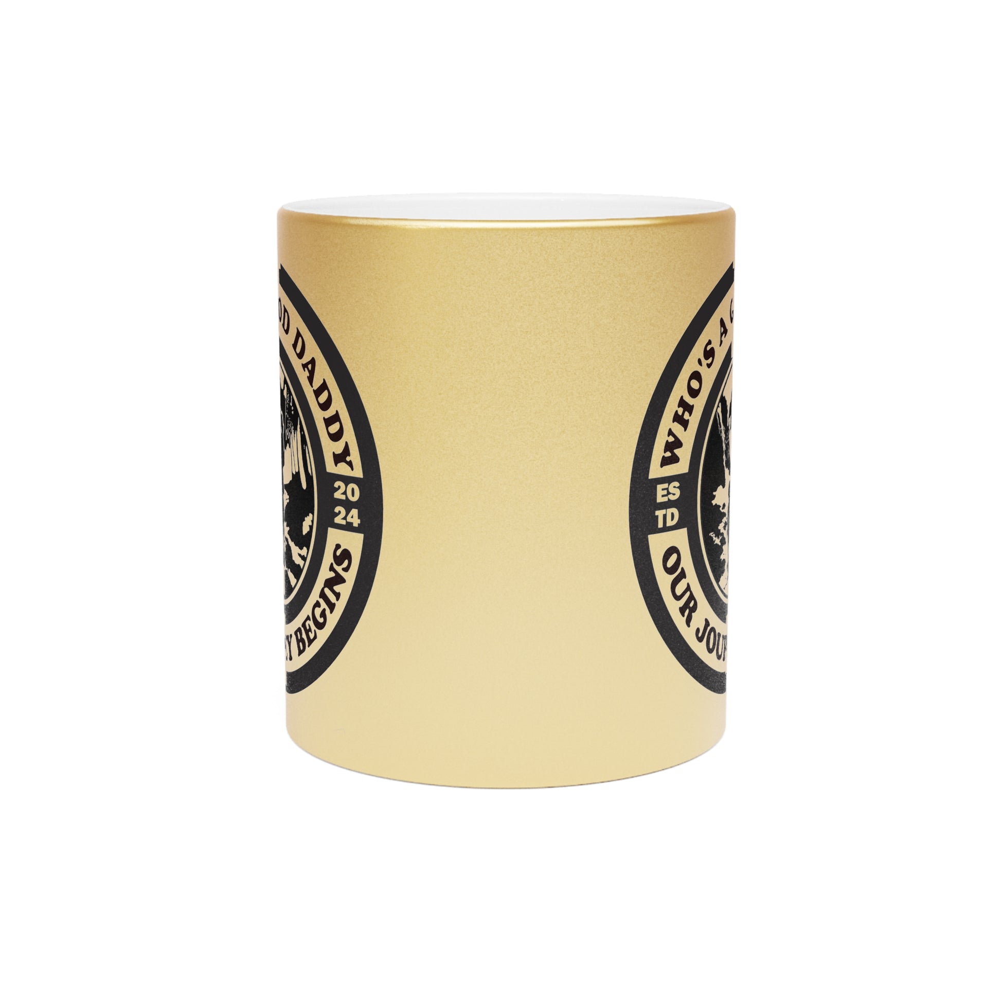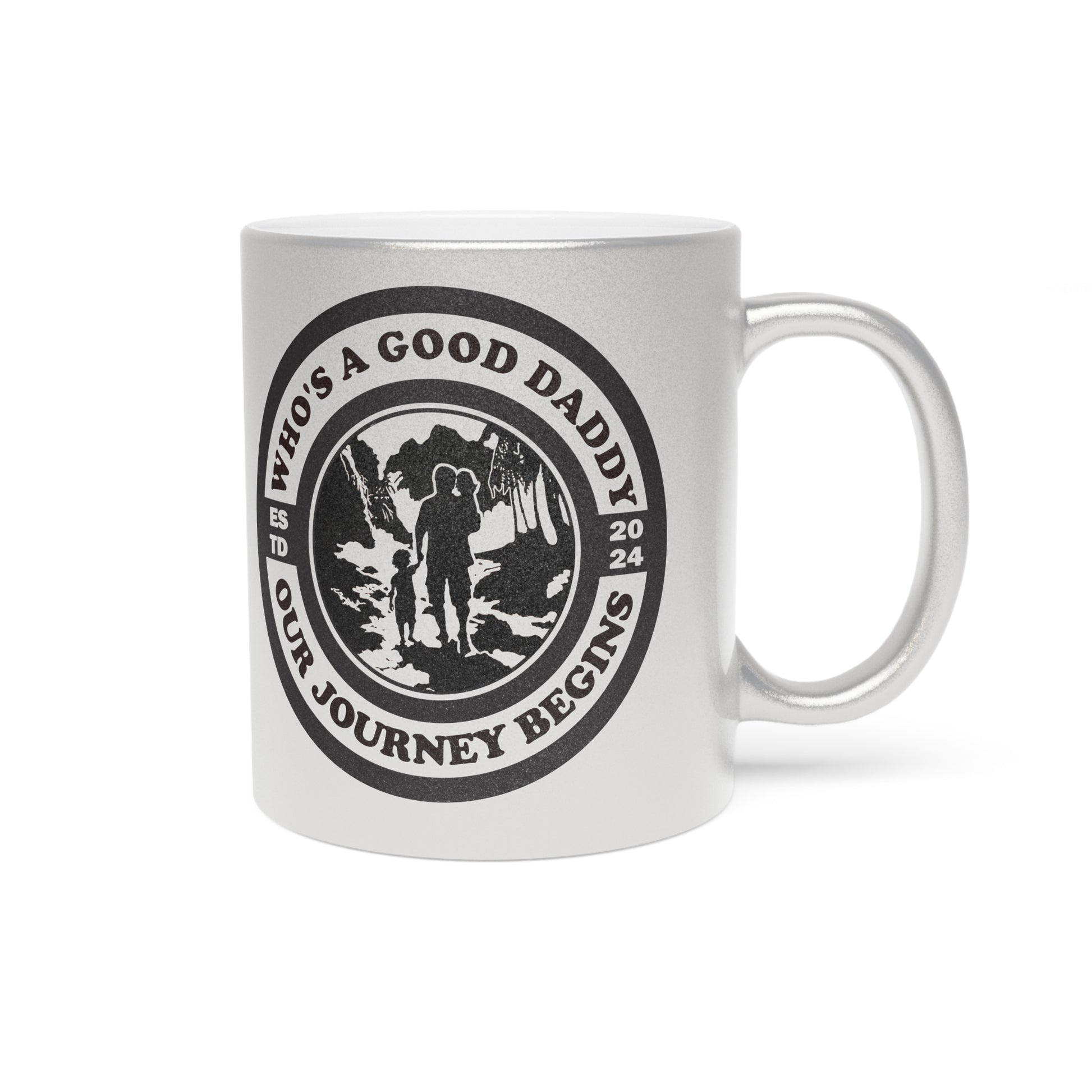 At Whose A Good Daddy, we believe that every moment is important. Sometimes it's even just having a nice cup of coffee with a loved one. This coffee mug carries our logo and a representation of our belief in family peace, harmony, and unity. Let our journey begin and let it begin with a warm cup of coffee! Personalized metallic coffee mugs are the perfect way to begin or end your day. These 11oz mugs are made with ceramic material that can be coated with either a Gold or a Silver coating for extra flashy looks.