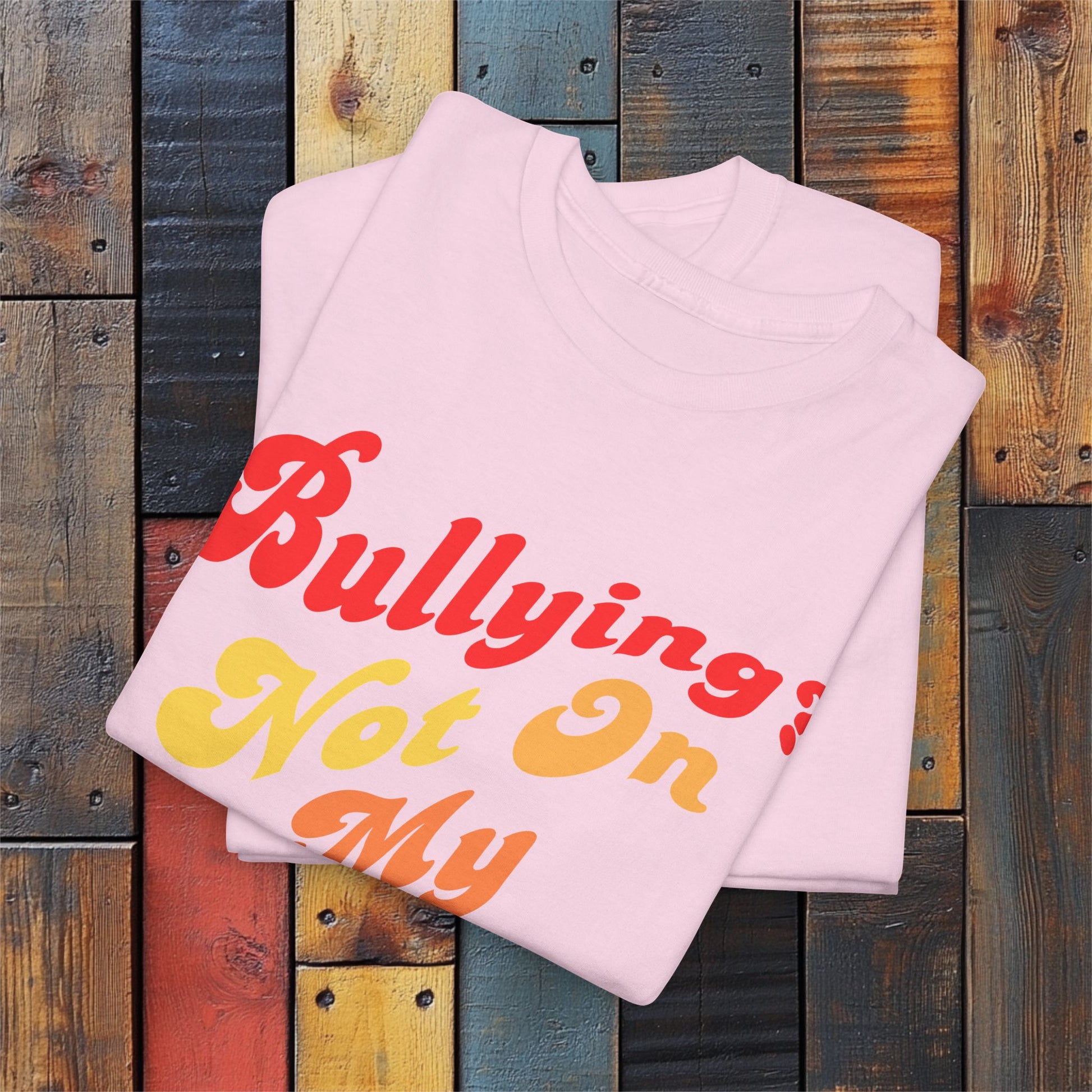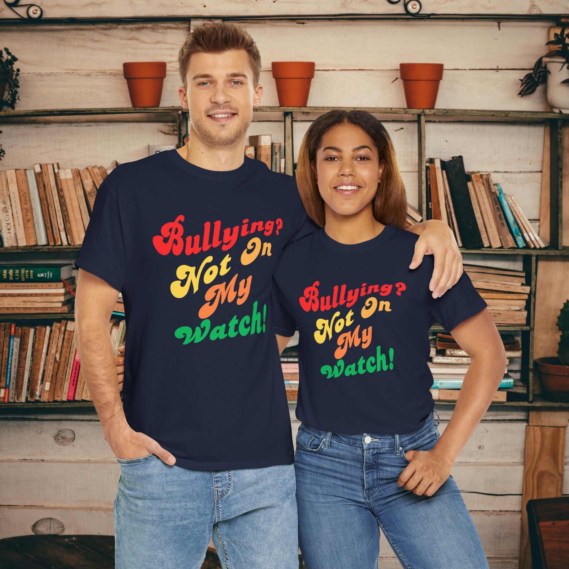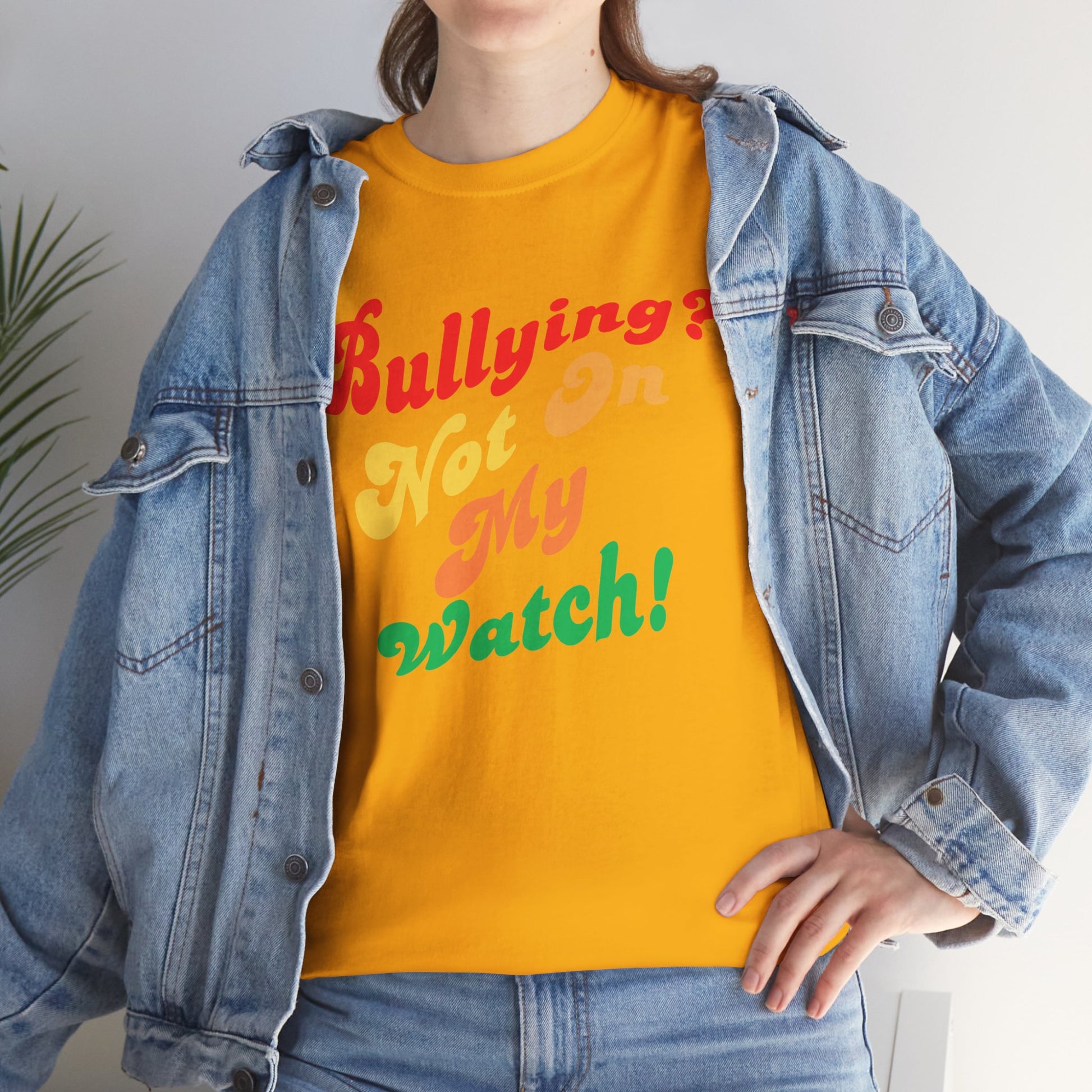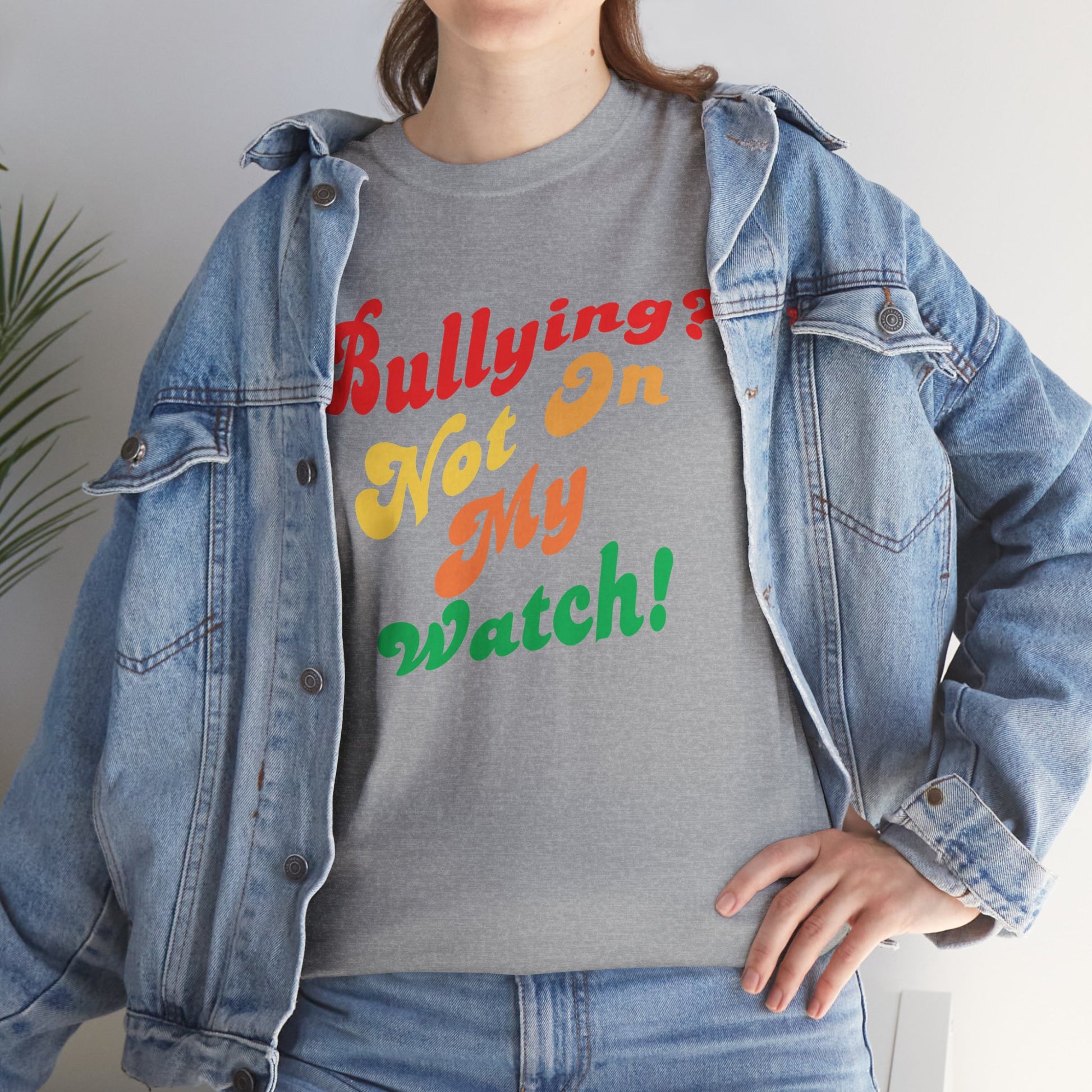 Help stop the bullying! The unisex heavy cotton tee is the basic staple of any wardrobe. It is the foundation upon which casual fashion grows. All it needs is a personalized design to elevate things to profitability. The specially spun fibers provide a smooth surface for premium printing vividity and sharpness. No side seams mean there are no itchy interruptions under the arms. The shoulders have tape for improved durability.