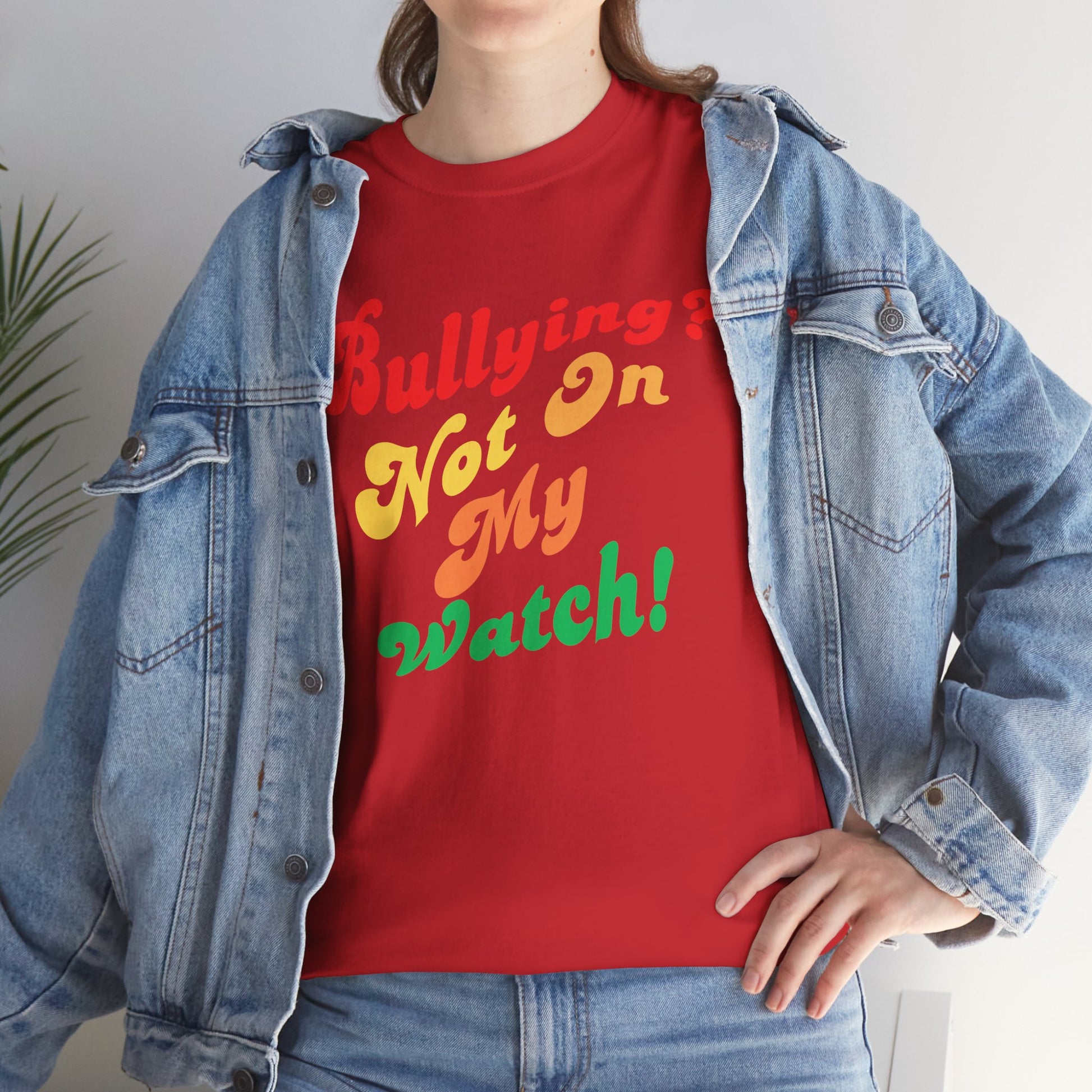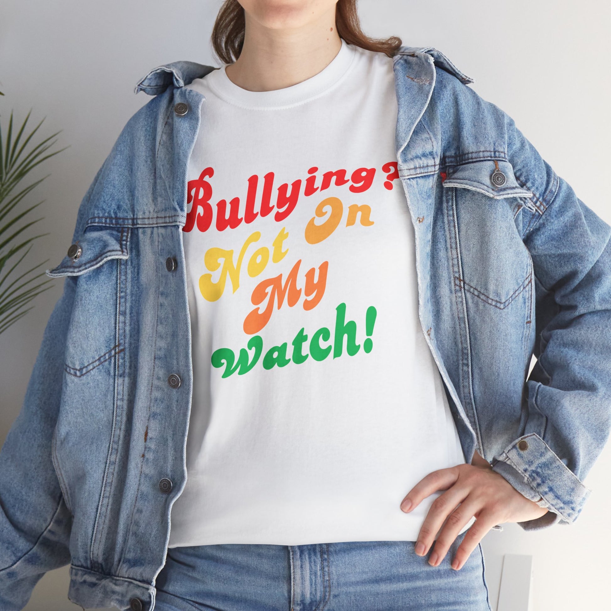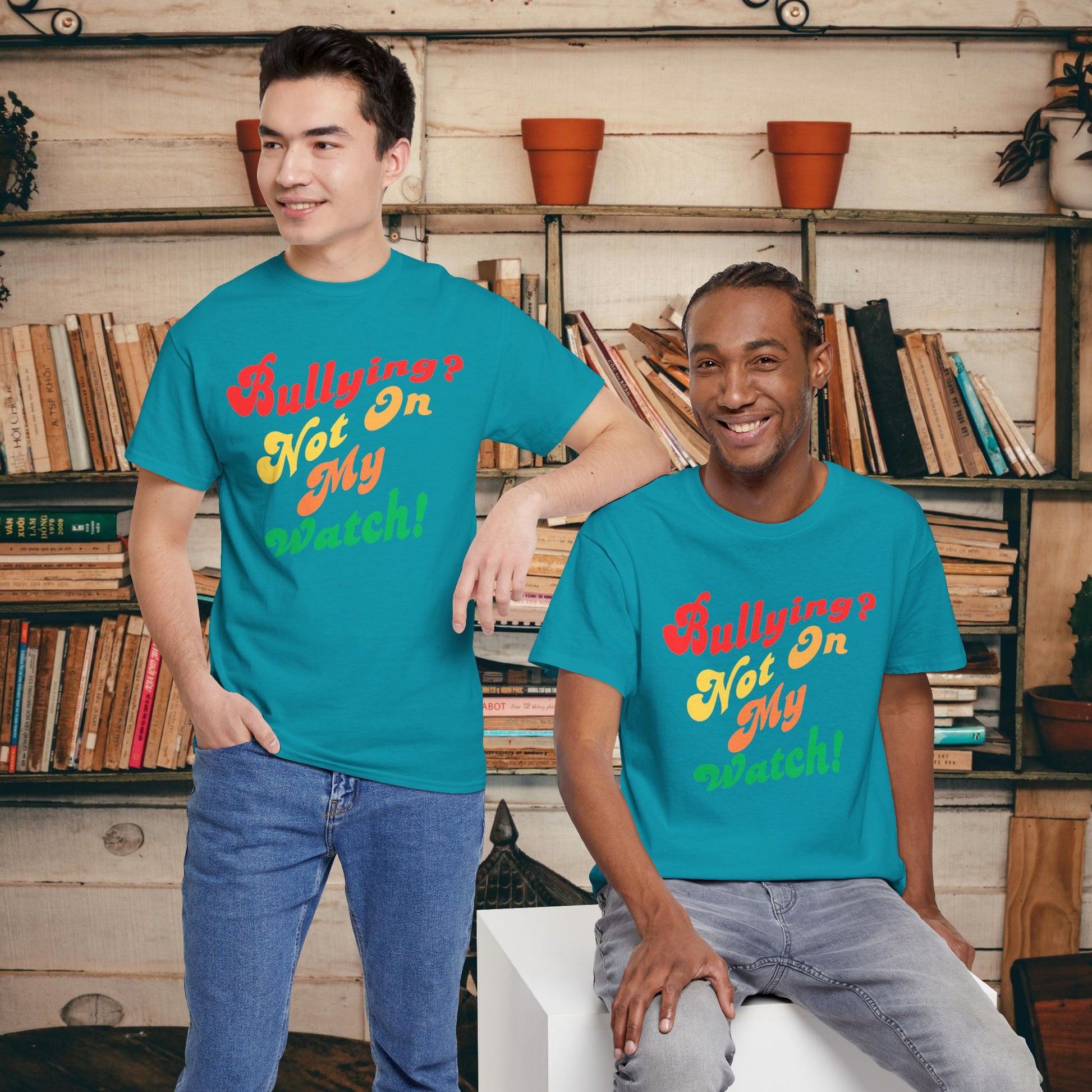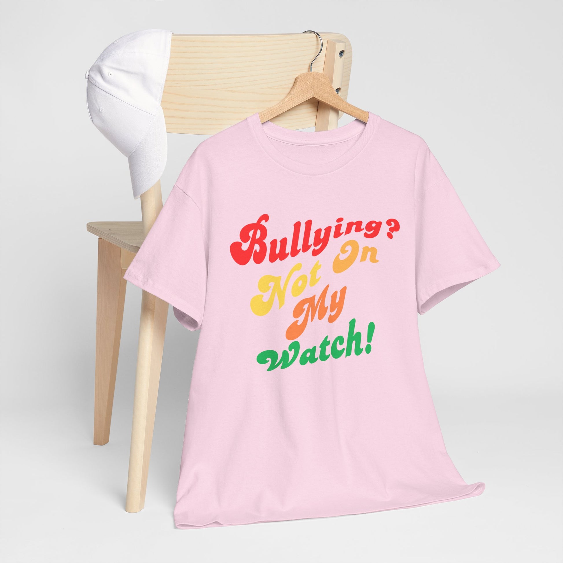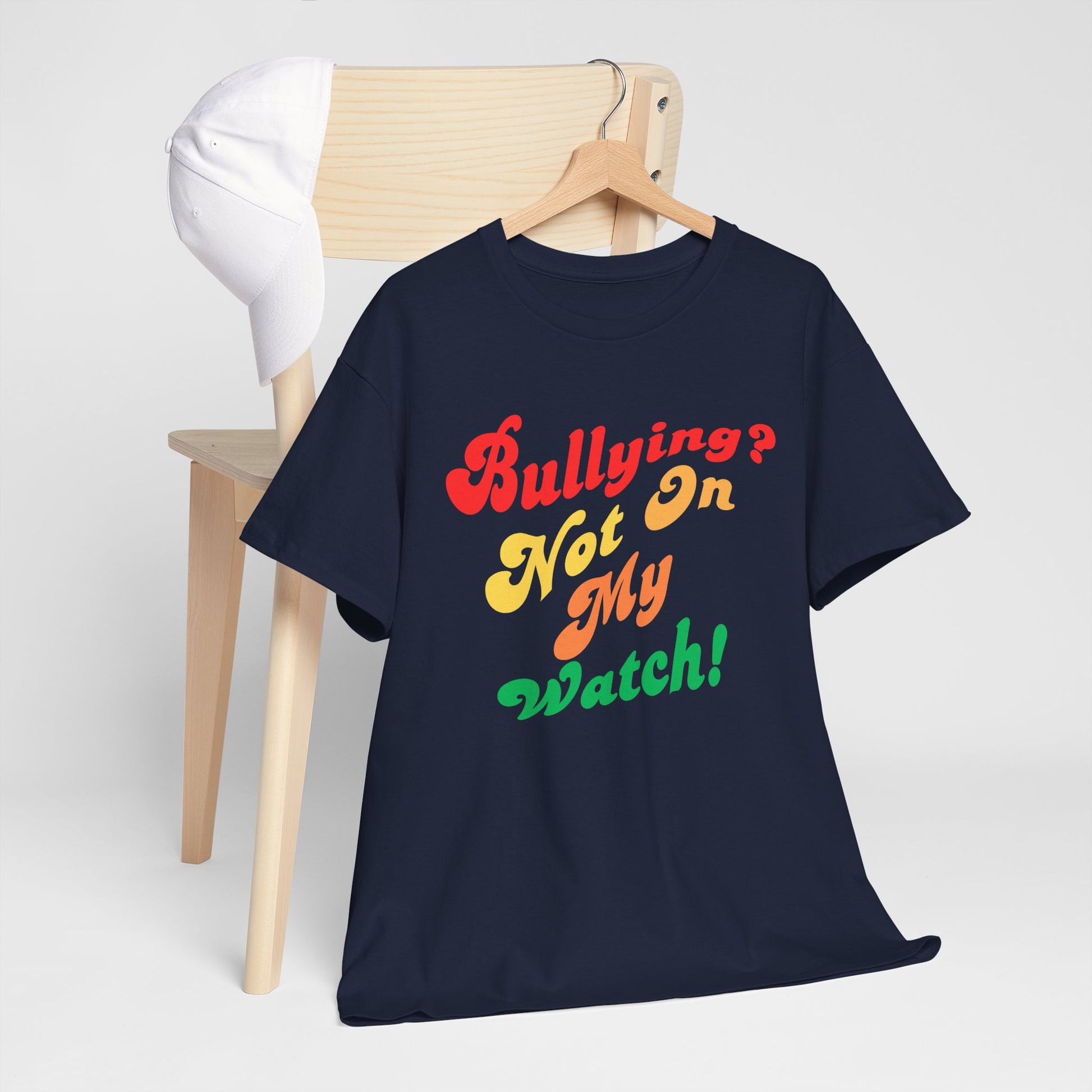 Help stop the bullying! The unisex heavy cotton tee is the basic staple of any wardrobe. It is the foundation upon which casual fashion grows. All it needs is a personalized design to elevate things to profitability. The specially spun fibers provide a smooth surface for premium printing vividity and sharpness. No side seams mean there are no itchy interruptions under the arms. The shoulders have tape for improved durability.