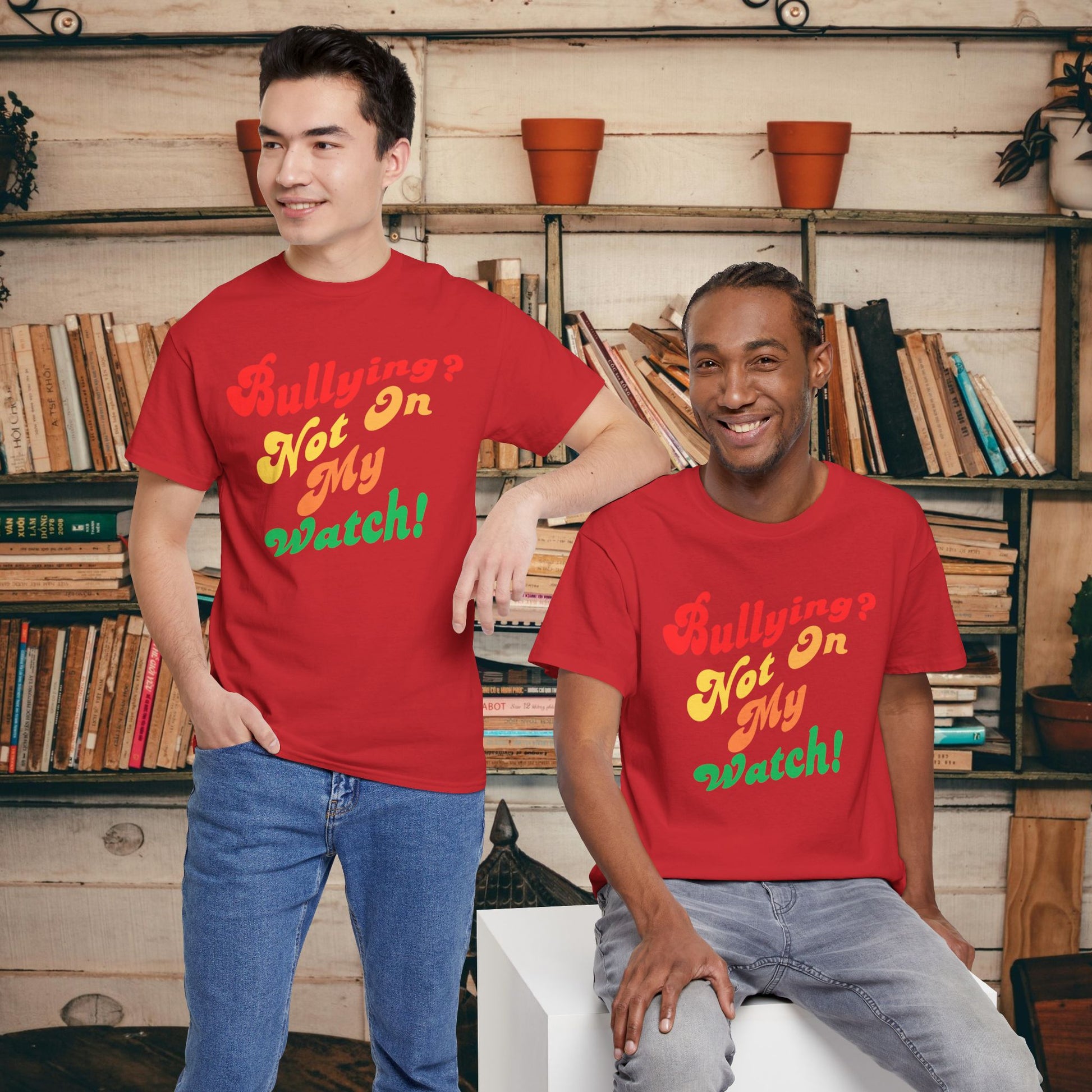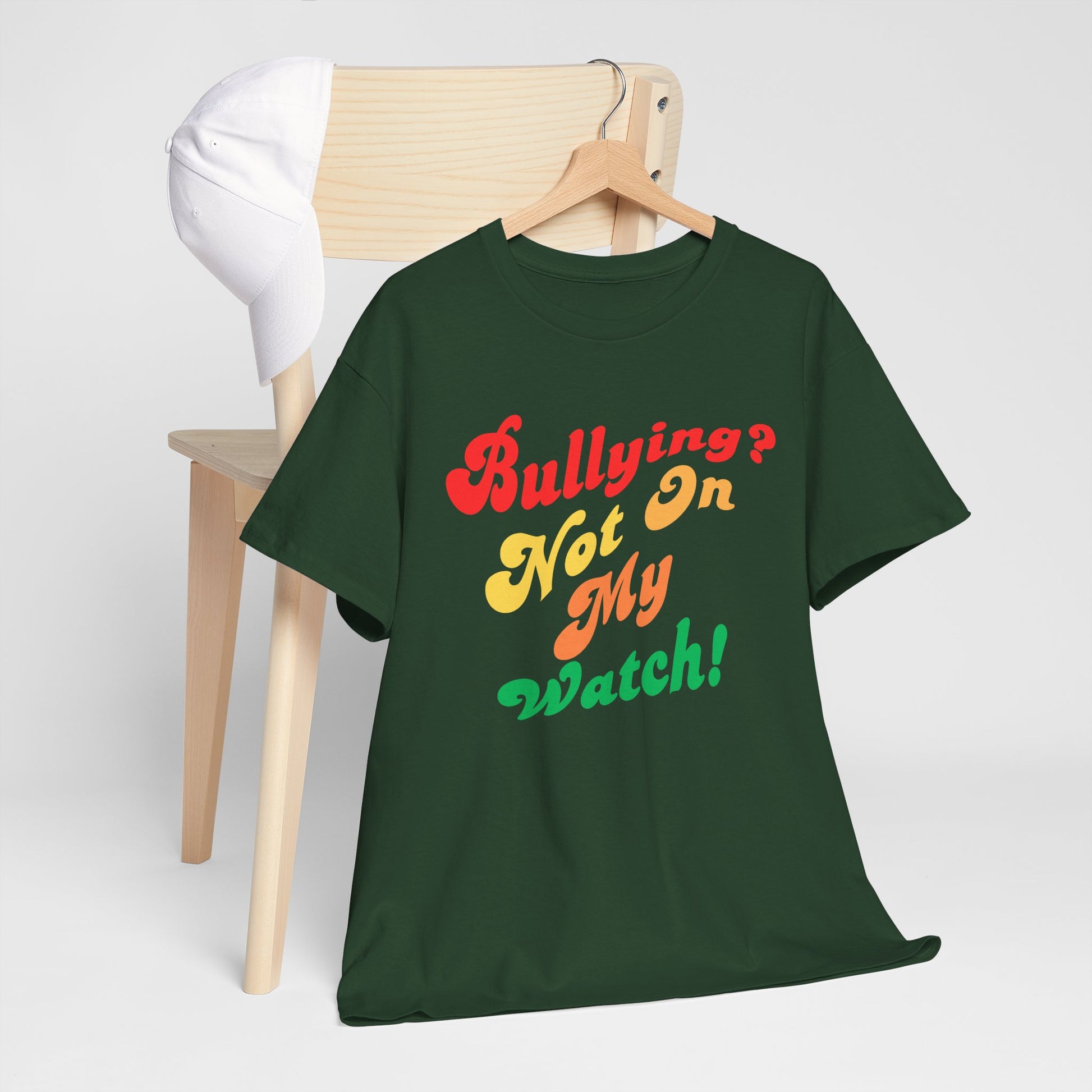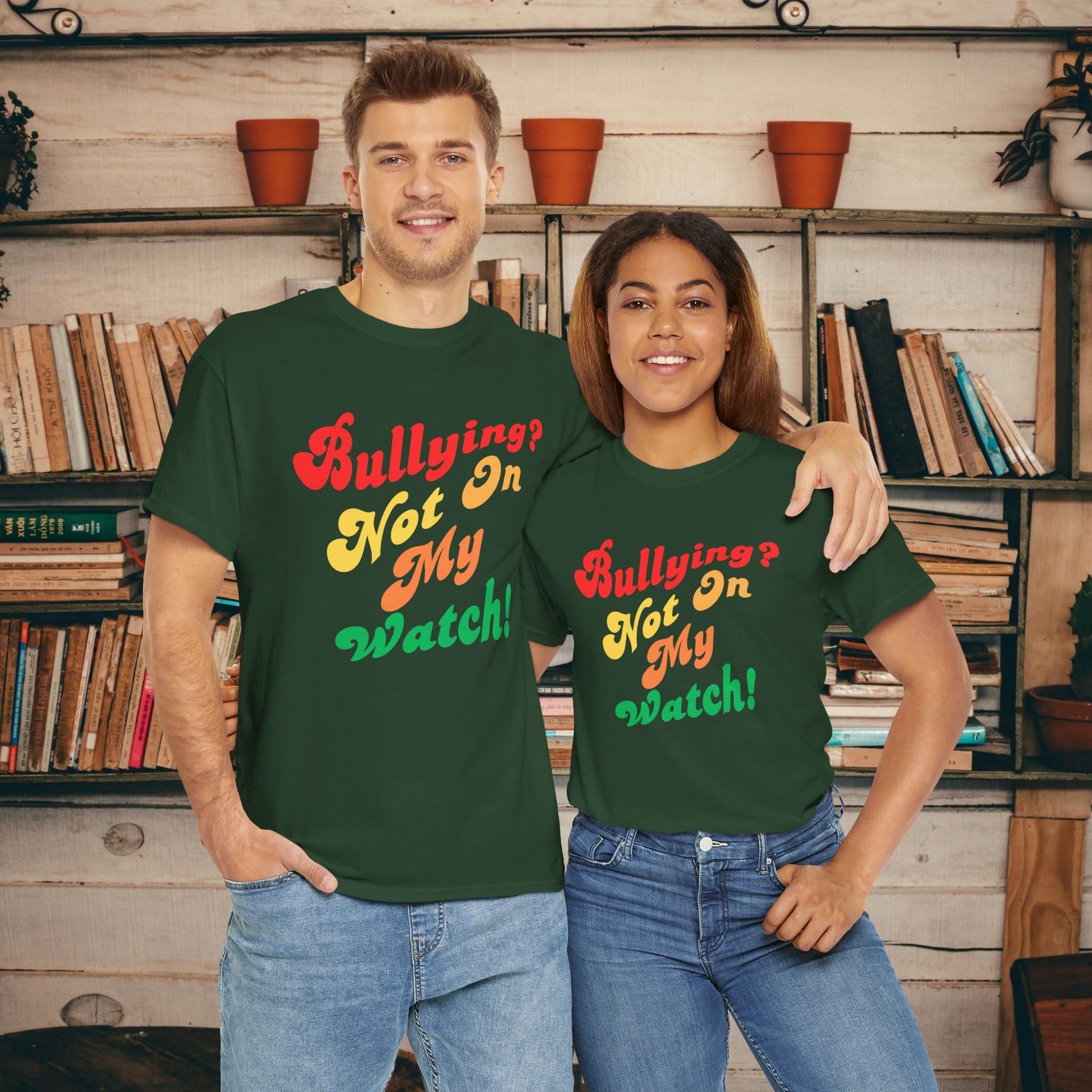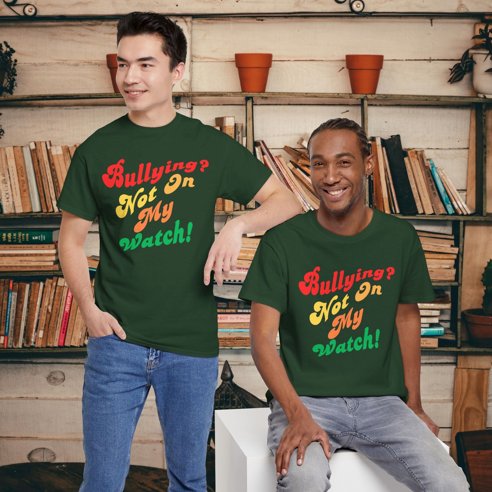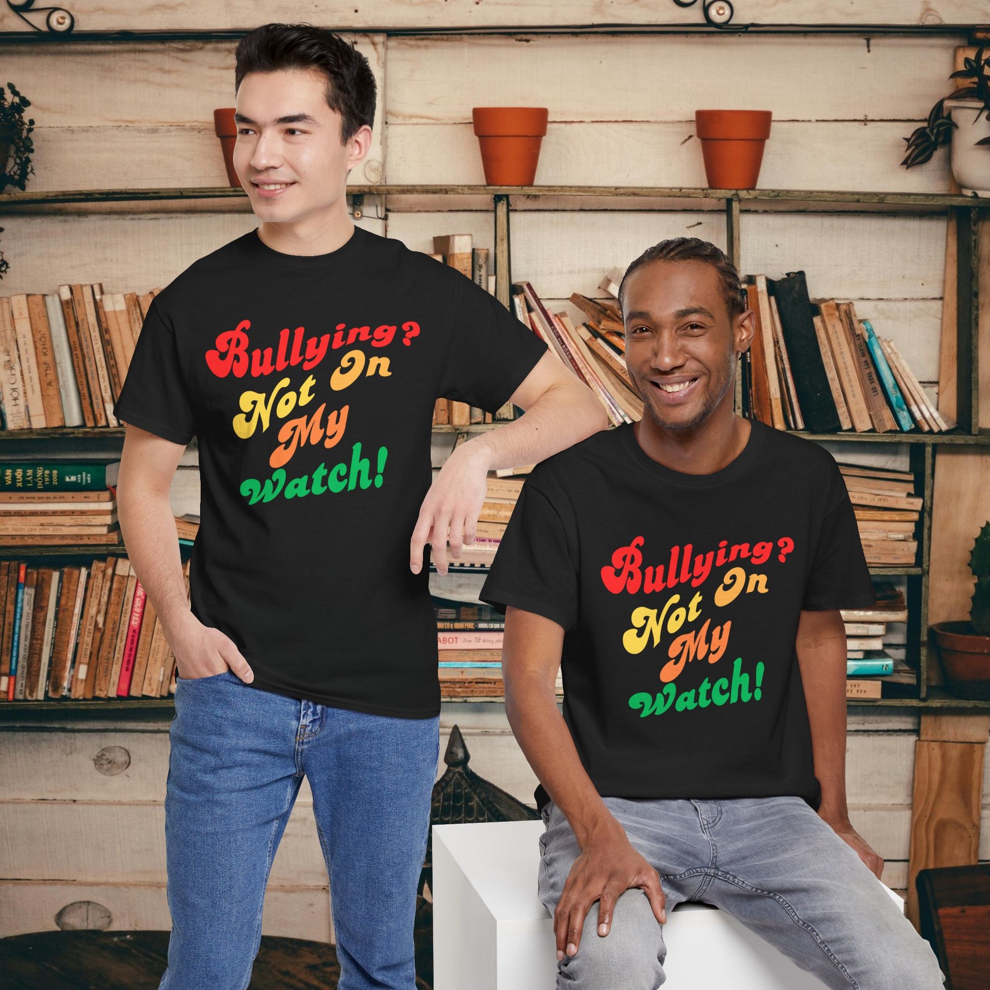 Help stop the bullying! The unisex heavy cotton tee is the basic staple of any wardrobe. It is the foundation upon which casual fashion grows. All it needs is a personalized design to elevate things to profitability. The specially spun fibers provide a smooth surface for premium printing vividity and sharpness. No side seams mean there are no itchy interruptions under the arms. The shoulders have tape for improved durability.