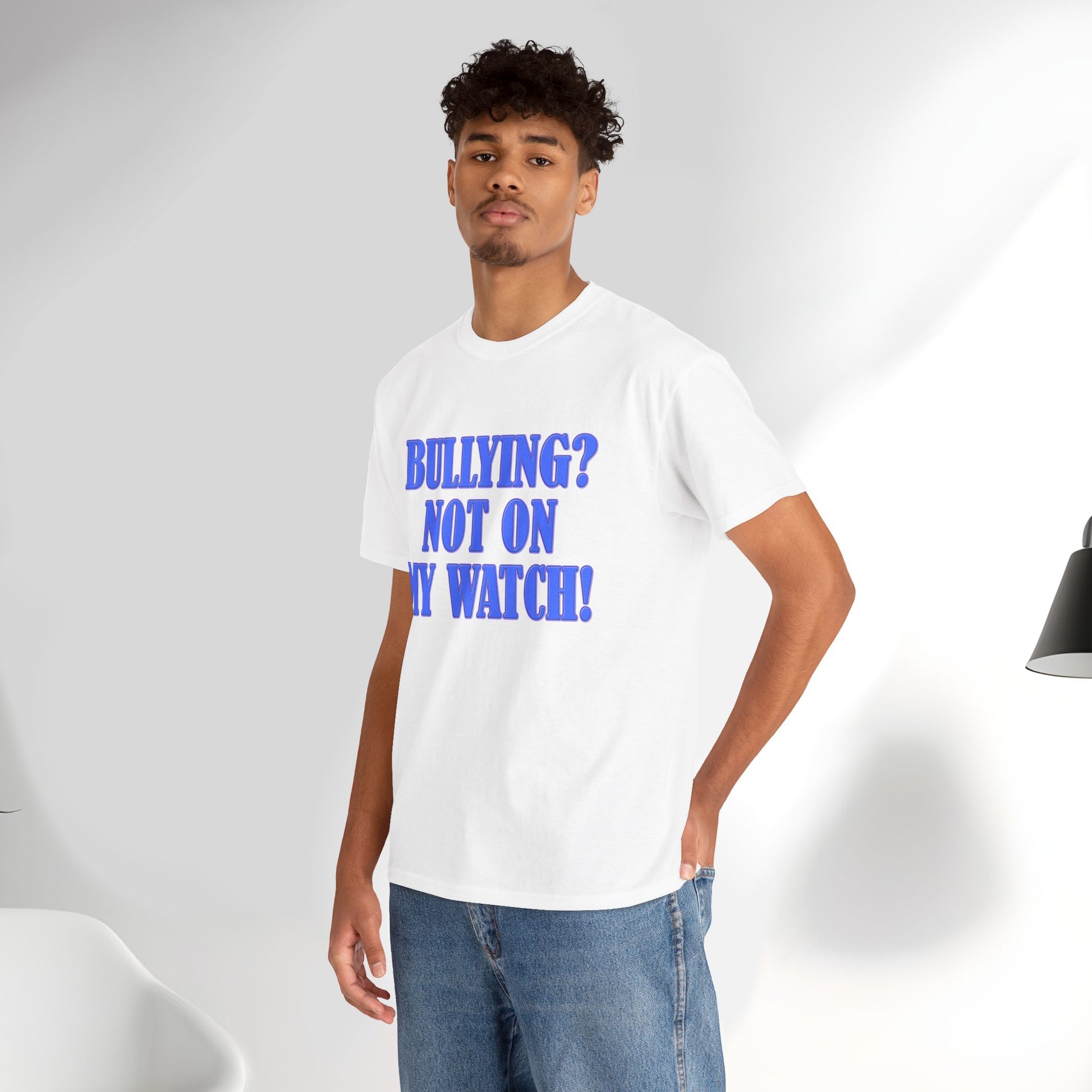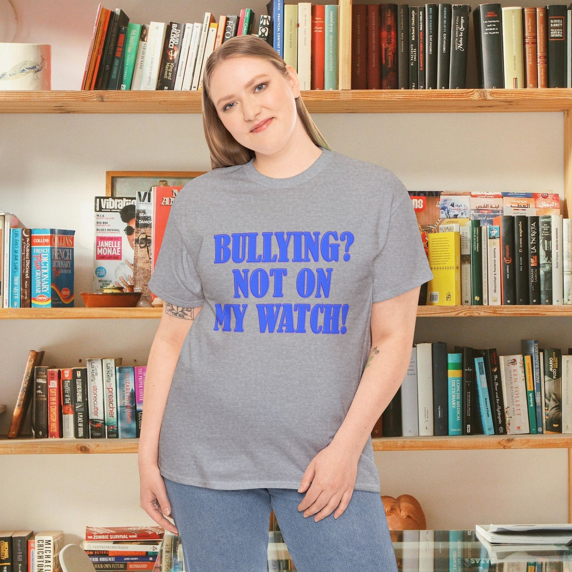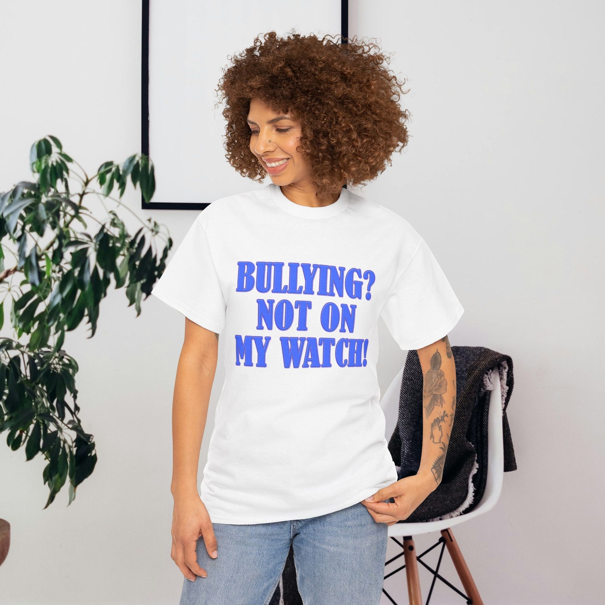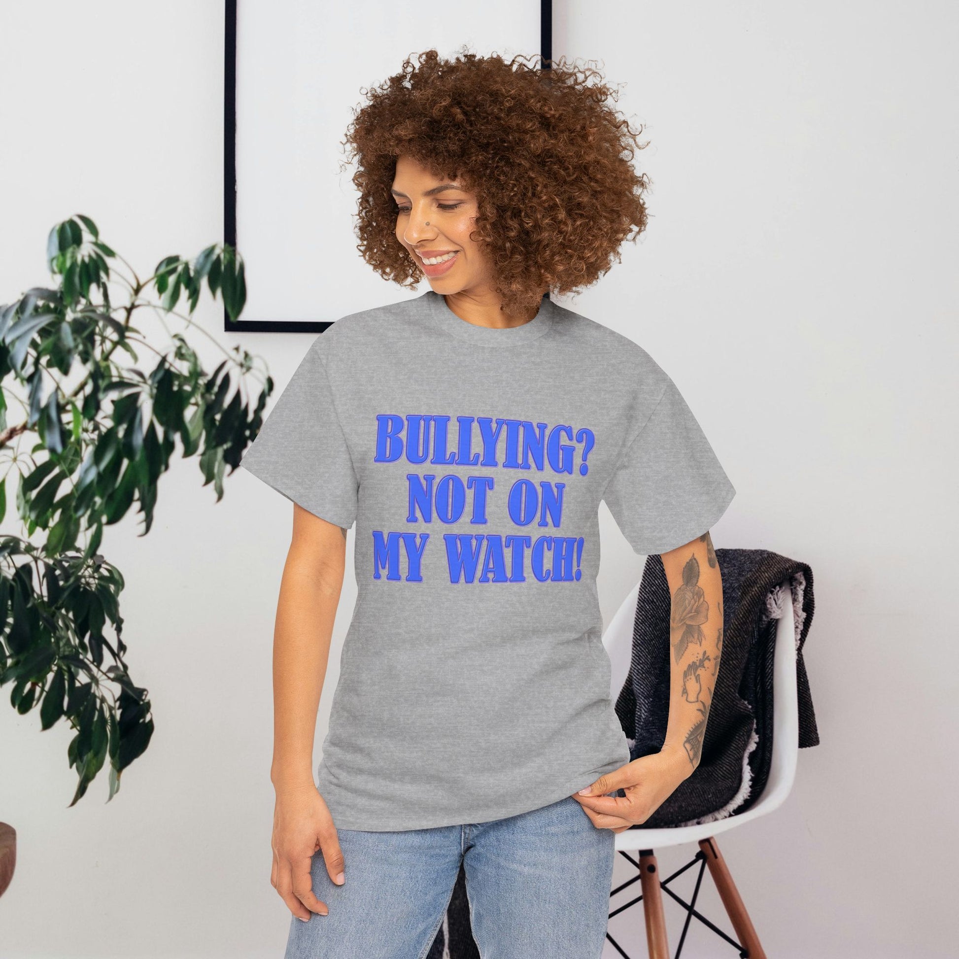 Let's help prevent Bullying? The unisex heavy cotton tee is the basic staple of any wardrobe. It is the foundation upon which casual fashion grows. All it needs is a personalized design to elevate things to profitability. The specially spun fibers provide a smooth surface for premium printing vividity and sharpness. No side seams mean there are no itchy interruptions under the arms. The shoulders have tape for improved durability.