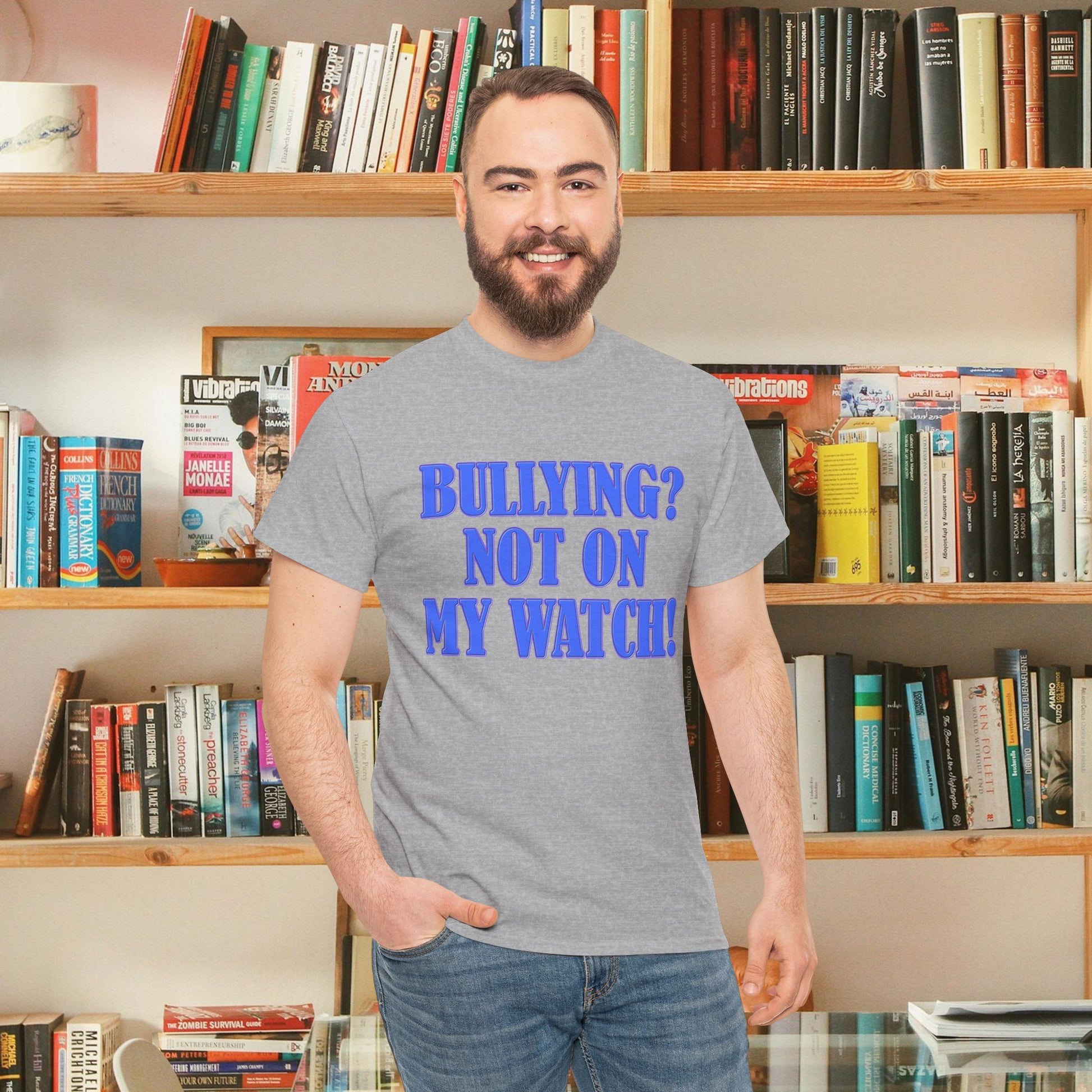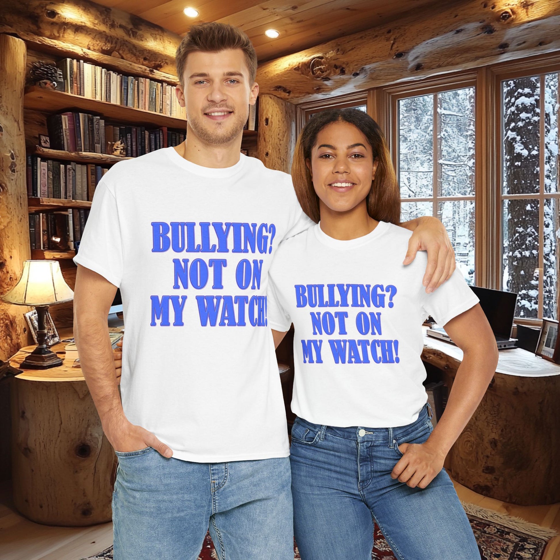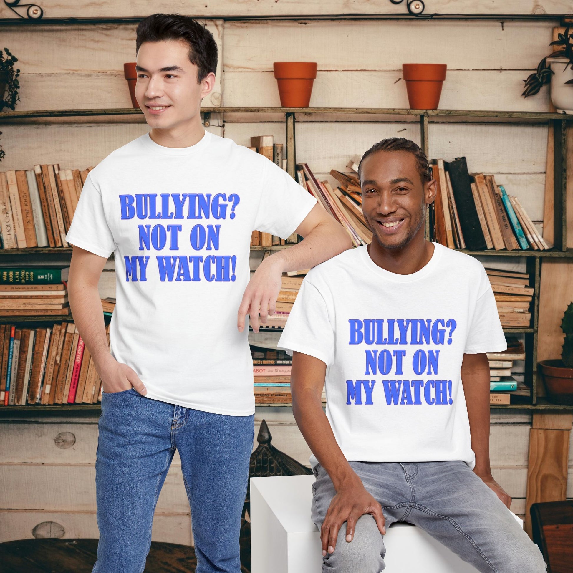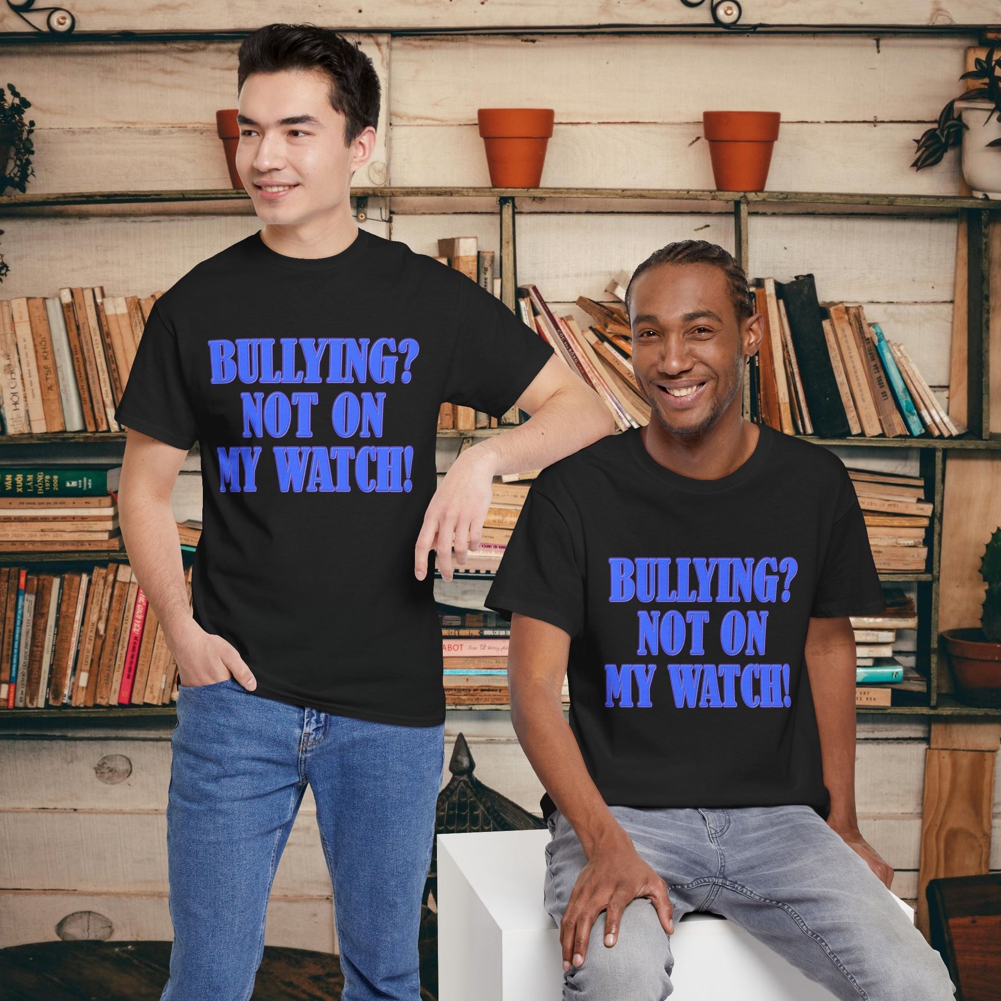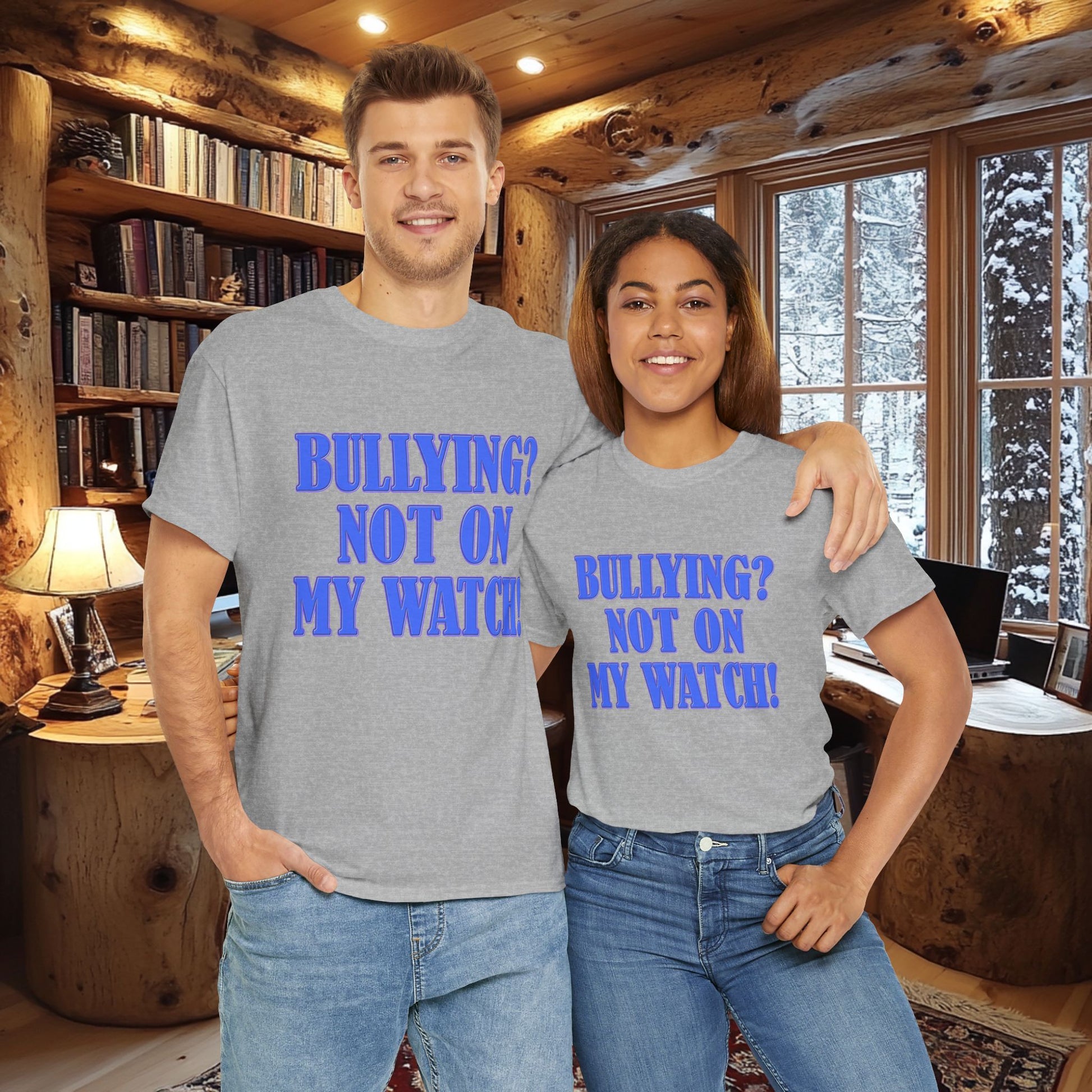 Let's help prevent Bullying? The unisex heavy cotton tee is the basic staple of any wardrobe. It is the foundation upon which casual fashion grows. All it needs is a personalized design to elevate things to profitability. The specially spun fibers provide a smooth surface for premium printing vividity and sharpness. No side seams mean there are no itchy interruptions under the arms. The shoulders have tape for improved durability.
