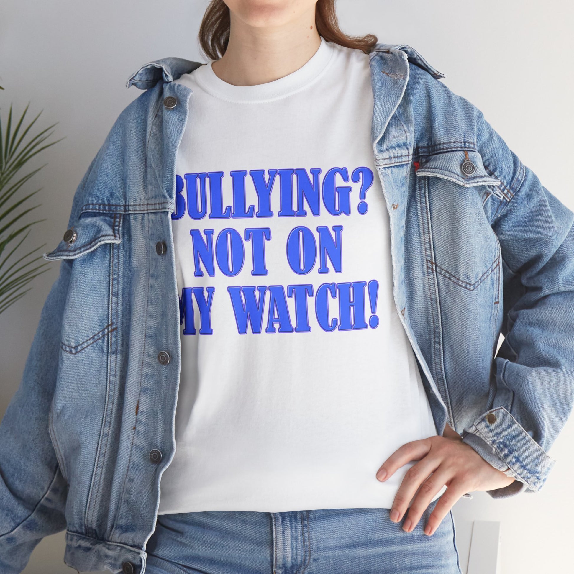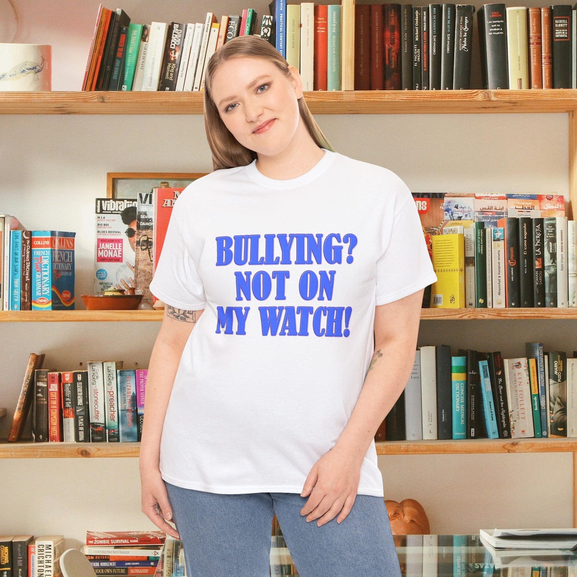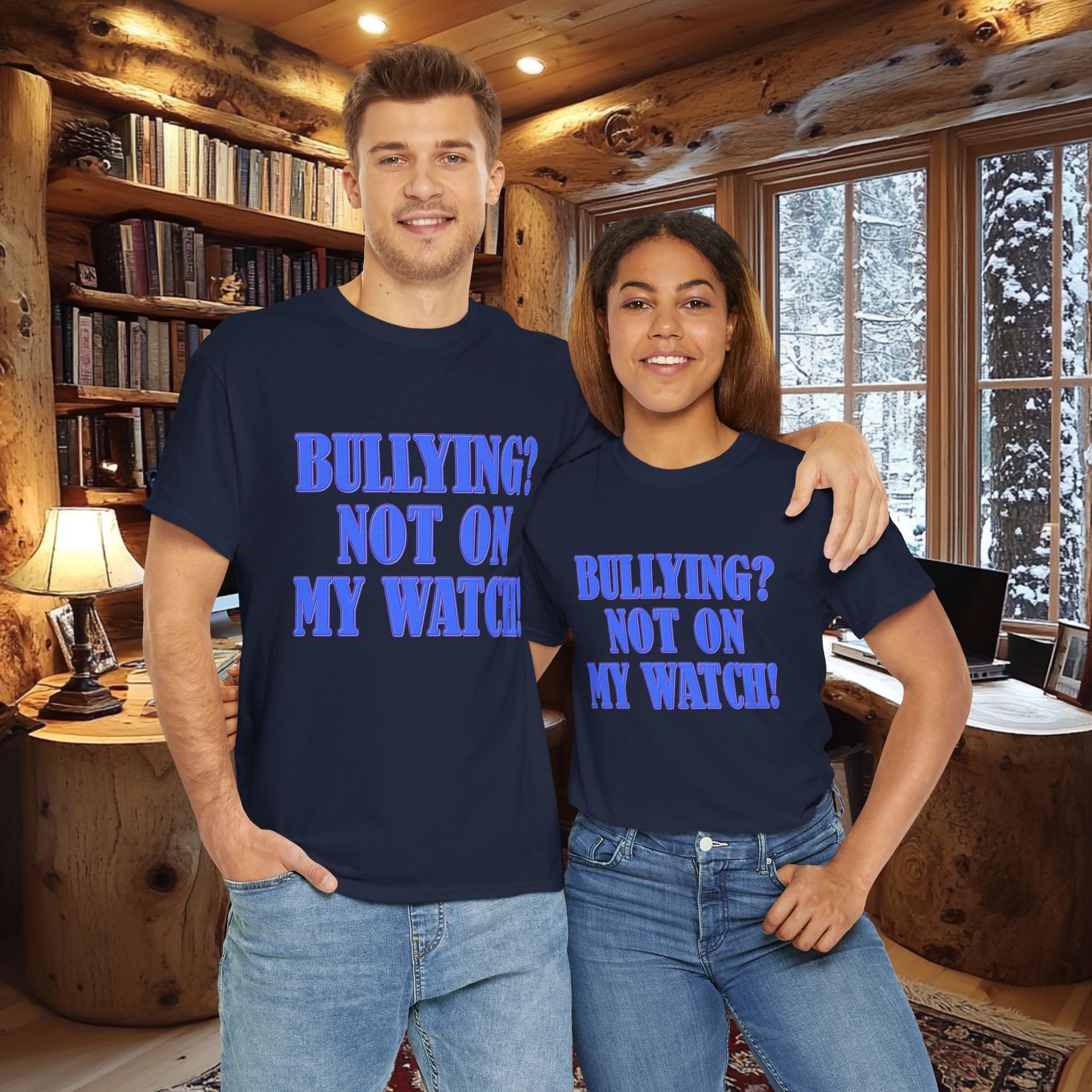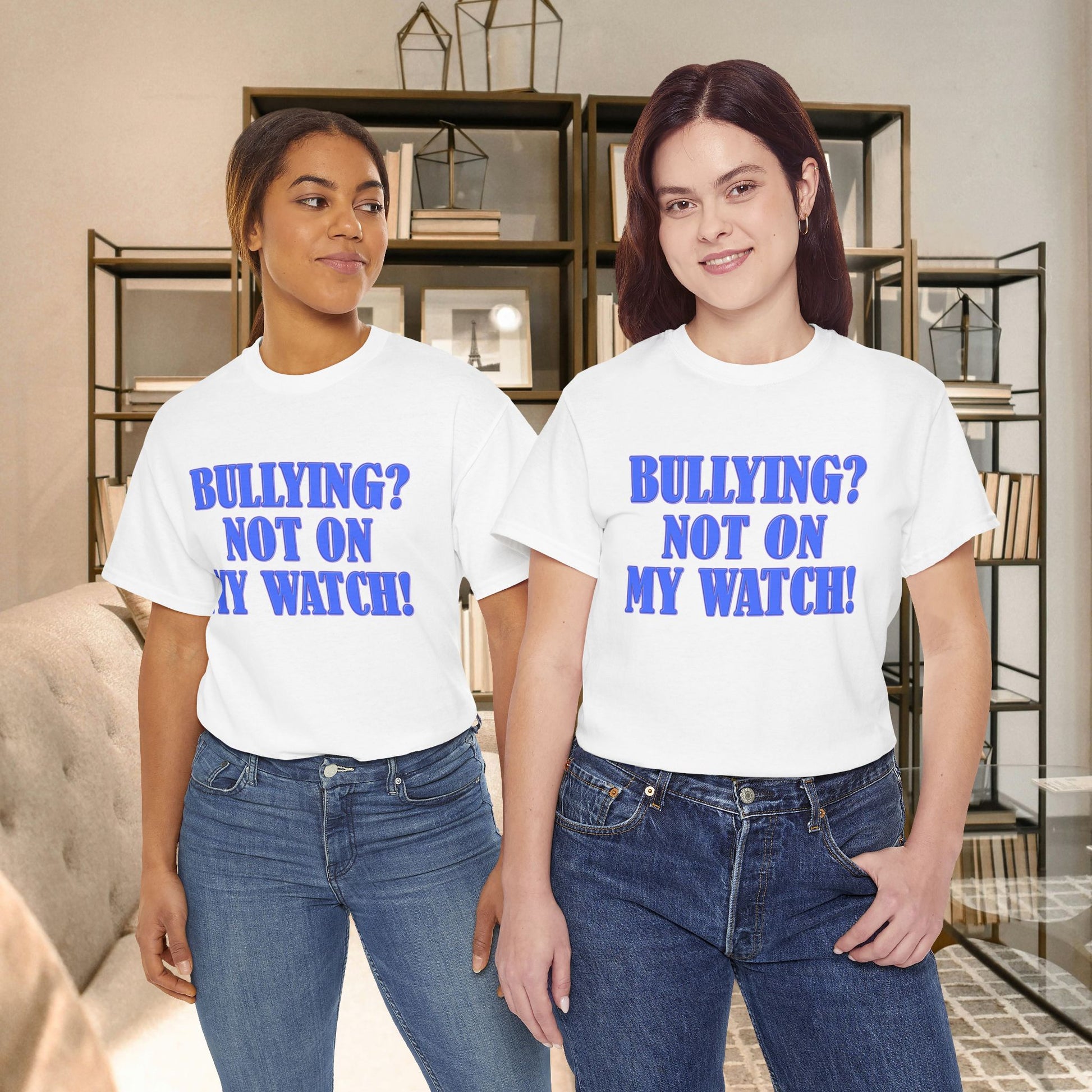 Let's help prevent Bullying? The unisex heavy cotton tee is the basic staple of any wardrobe. It is the foundation upon which casual fashion grows. All it needs is a personalized design to elevate things to profitability. The specially spun fibers provide a smooth surface for premium printing vividity and sharpness. No side seams mean there are no itchy interruptions under the arms. The shoulders have tape for improved durability.