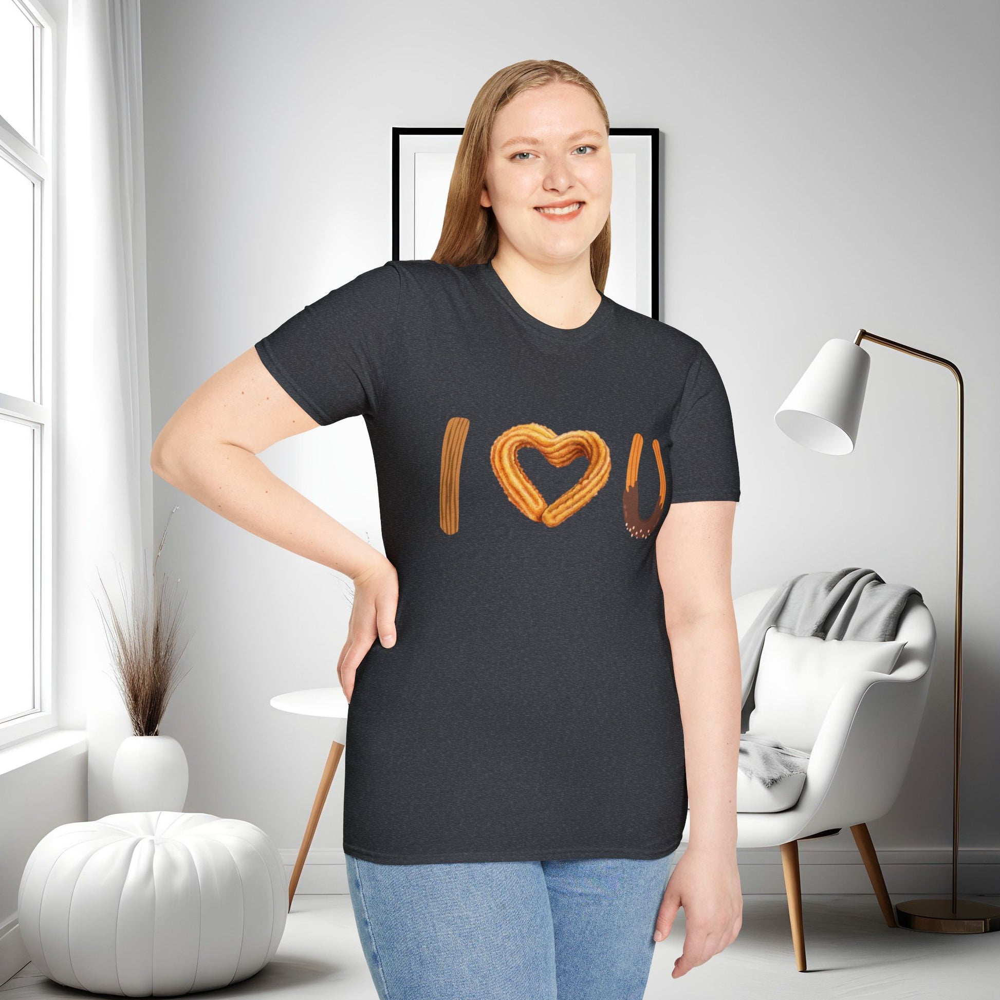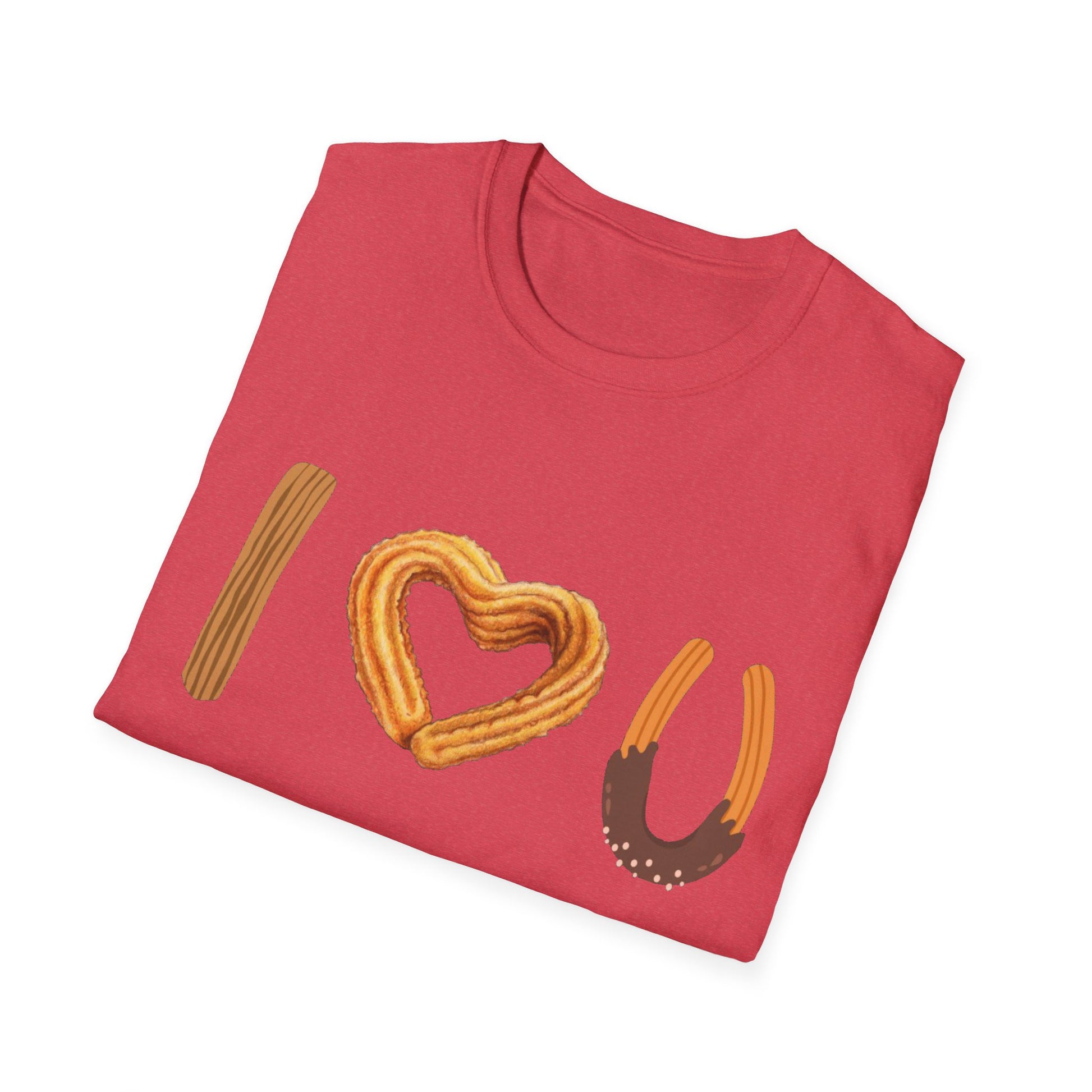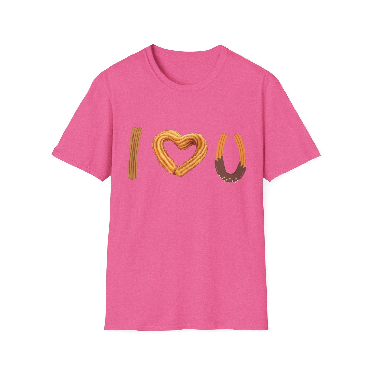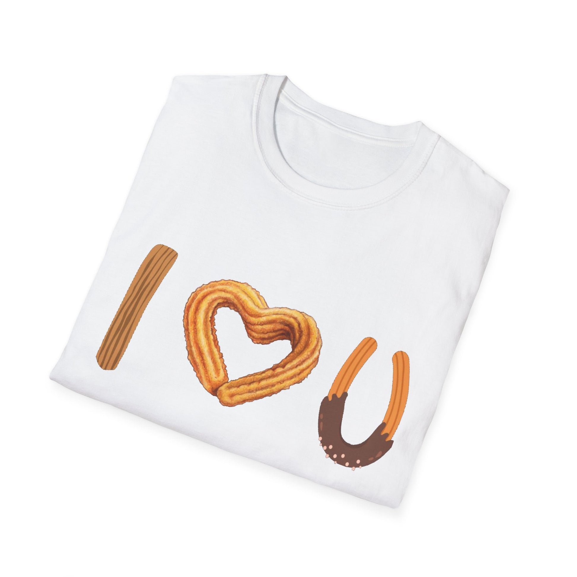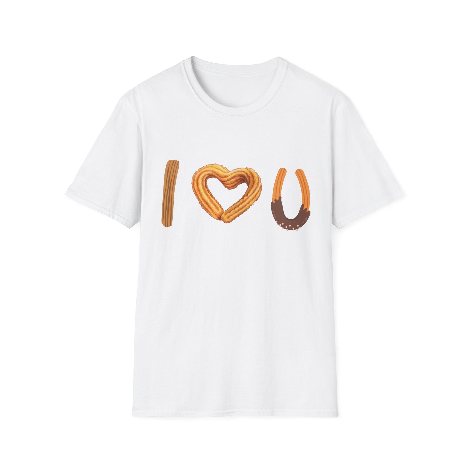 I love U and I love Churros! Churros is a popular pastry and is quite delicious! This shirt represents the love for churros and yes, even shows how much we love someone! The unisex soft-style t-shirt puts a new spin on casual comfort. Made from very soft materials, this tee is 100% cotton for solid colors. Heather colors and sports grey include polyester. The shoulders have twill tape for improved durability. There are no side seams. The collar is made with ribbed knitting to prevent curling damage.
