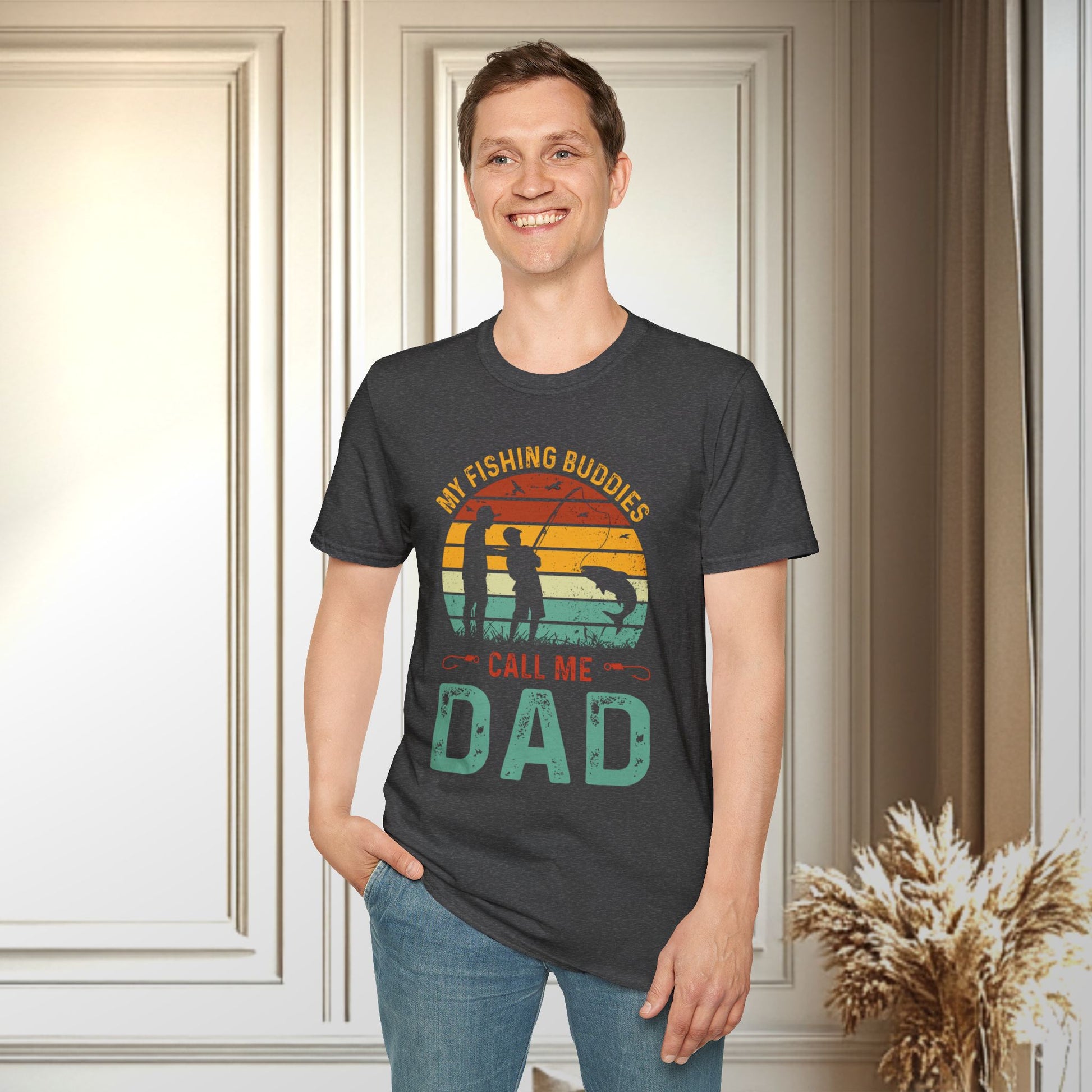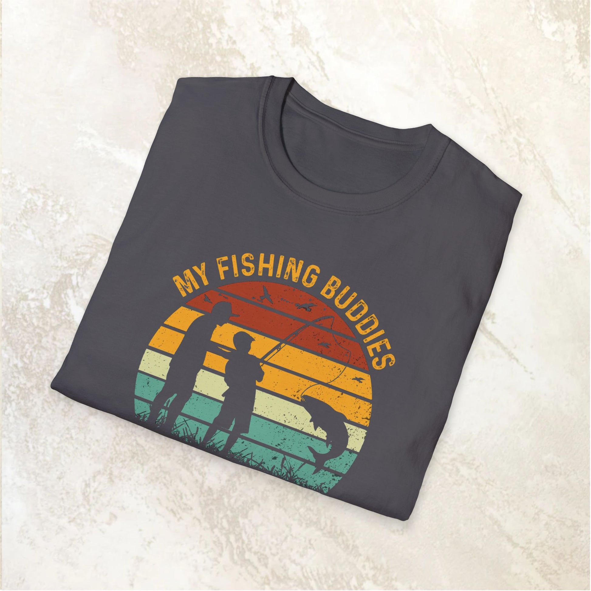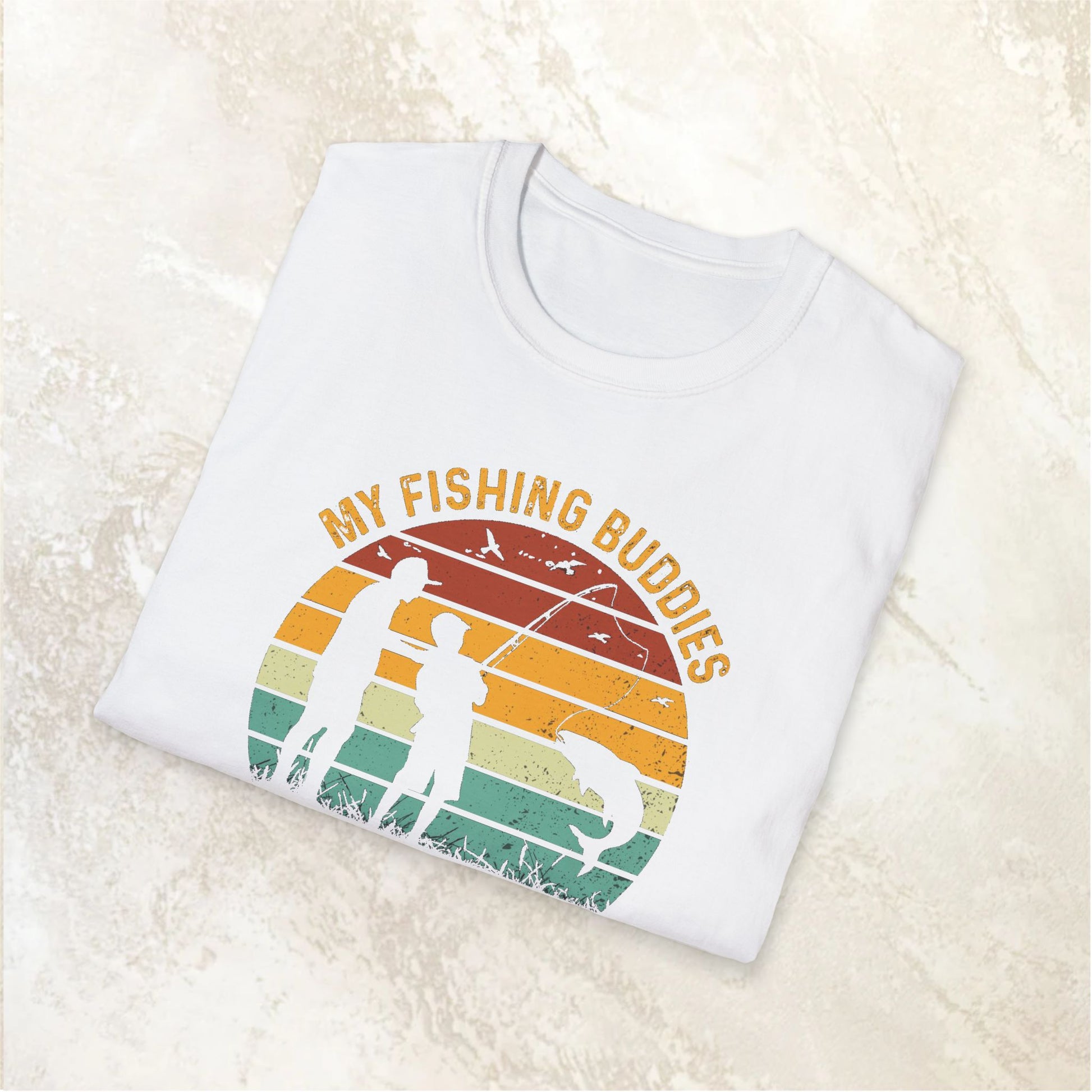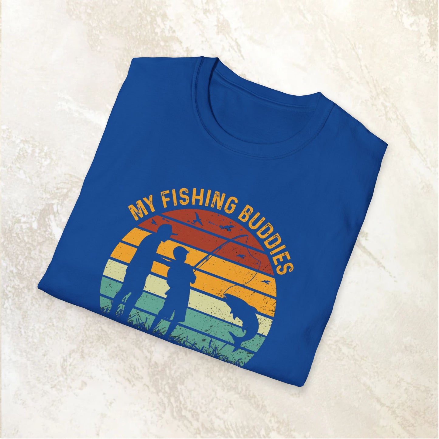 Let's go fishing! The unisex soft-style t-shirt puts a new spin on casual comfort. Made from very soft materials, this tee is 100% cotton for solid colors. Heather colors and sports grey include polyester. The shoulders have twill tape for improved durability. There are no side seams. The collar is made with ribbed knitting to prevent curling damage.