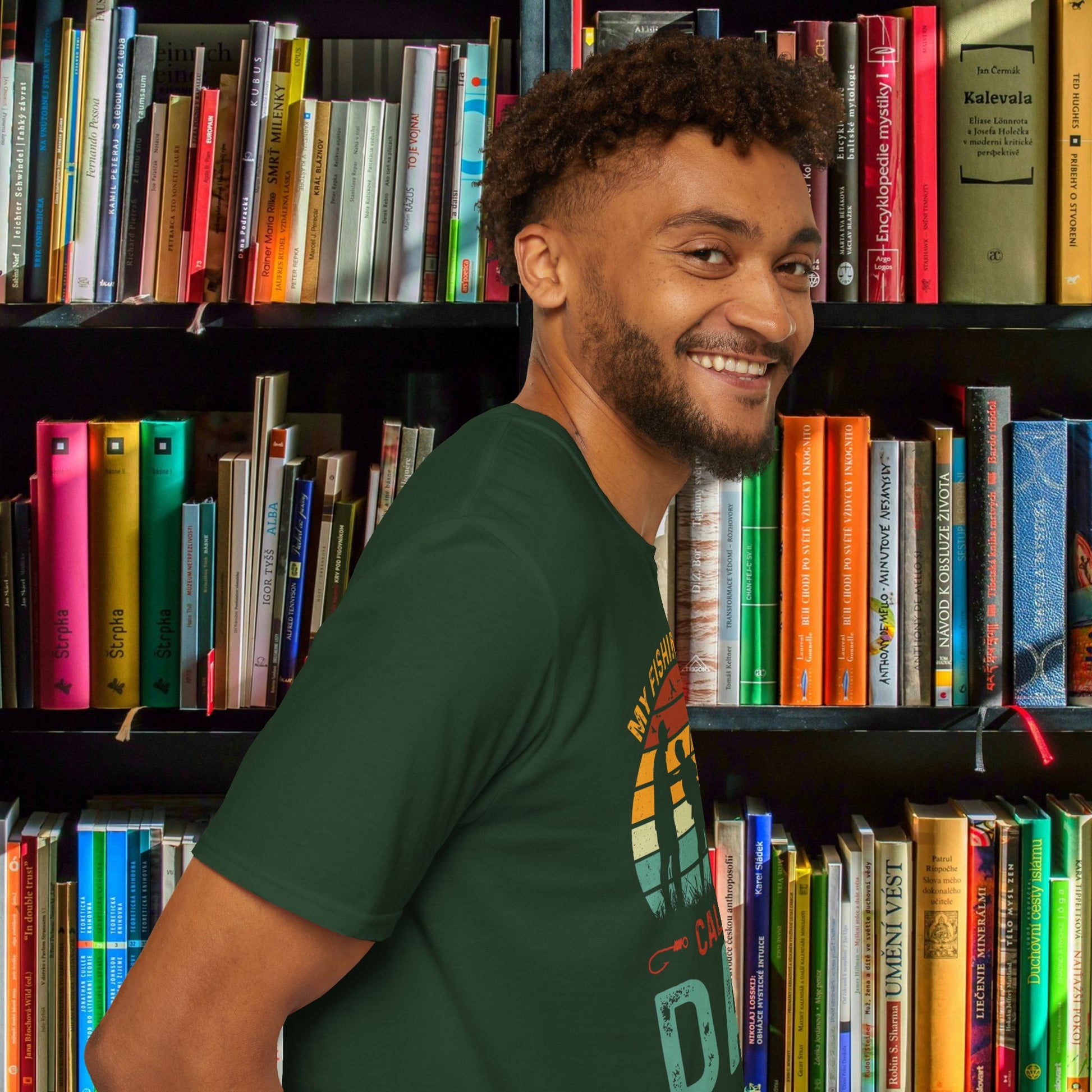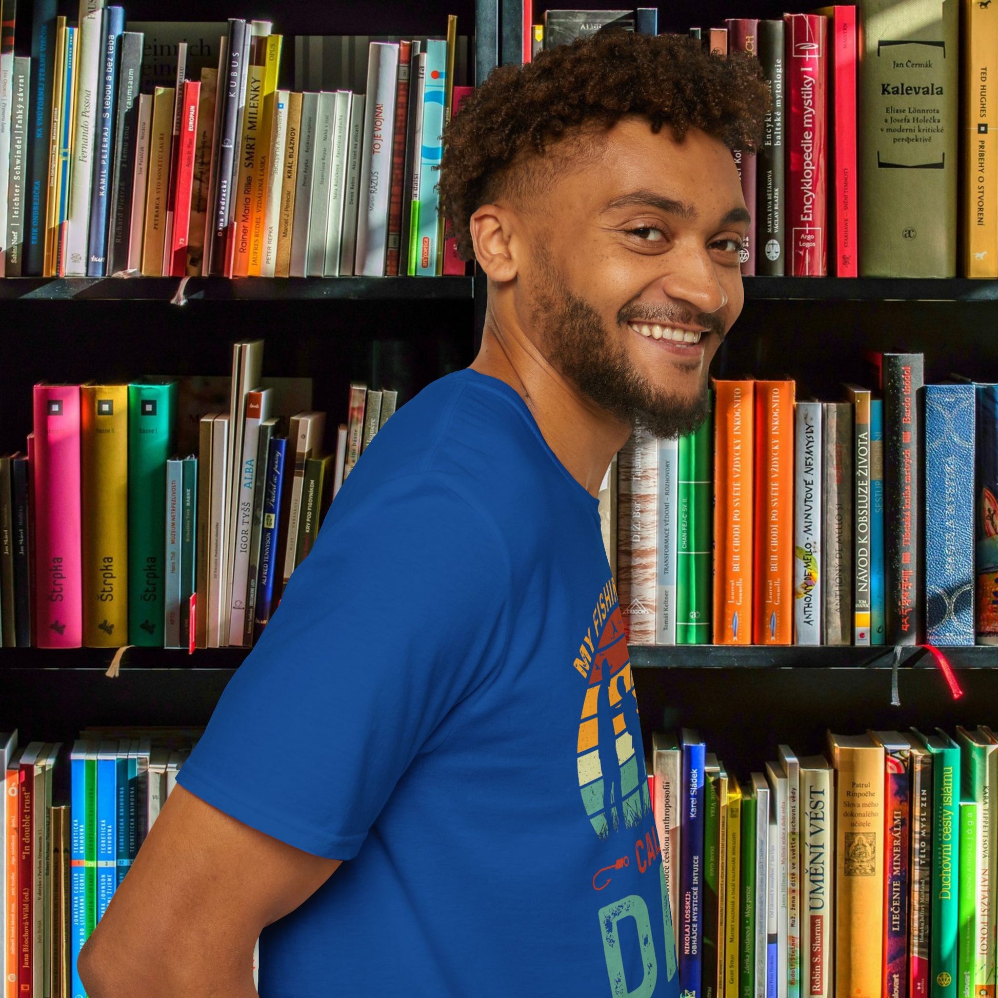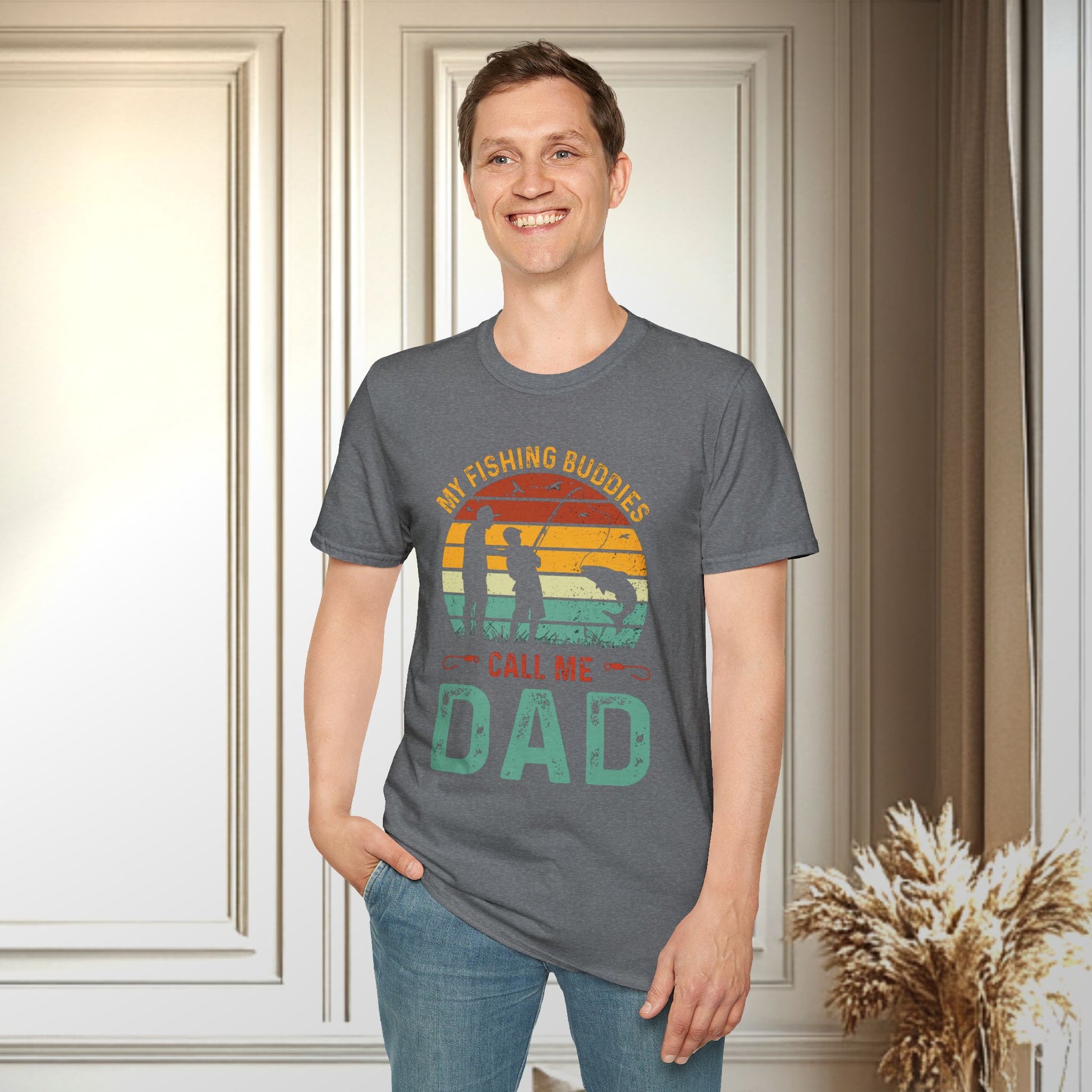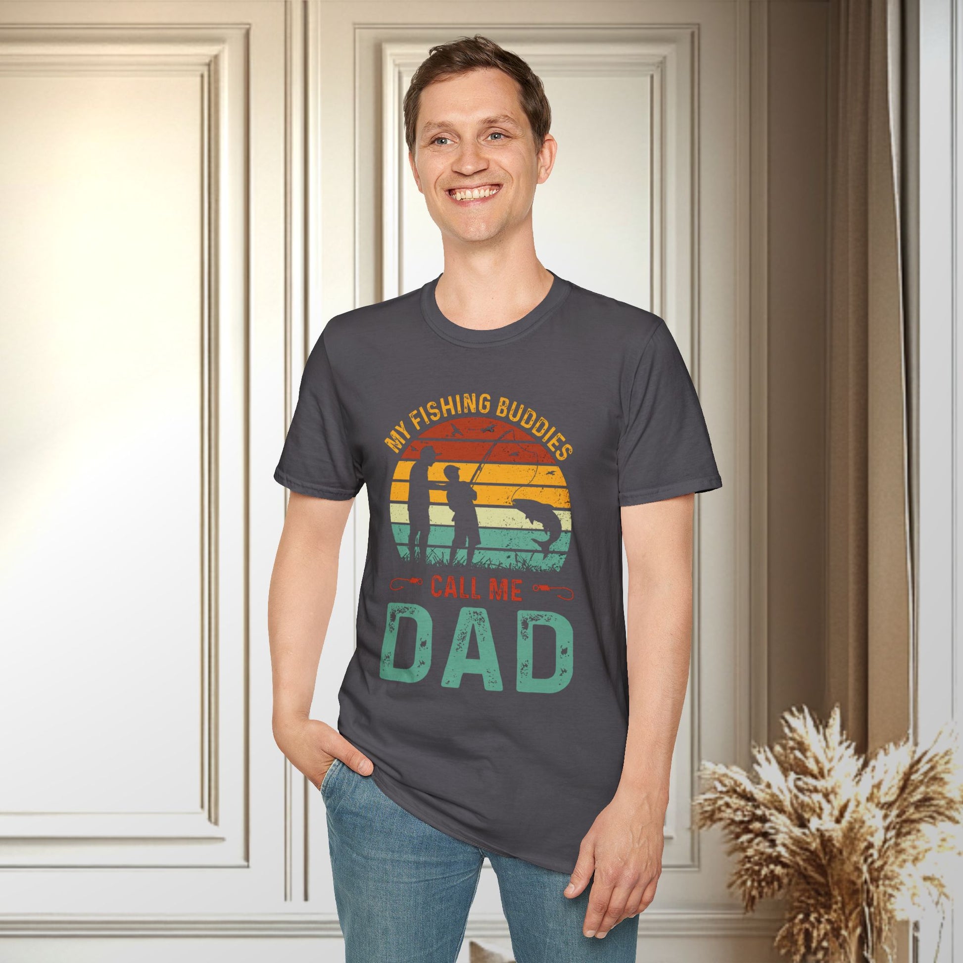 Let's go fishing! The unisex soft-style t-shirt puts a new spin on casual comfort. Made from very soft materials, this tee is 100% cotton for solid colors. Heather colors and sports grey include polyester. The shoulders have twill tape for improved durability. There are no side seams. The collar is made with ribbed knitting to prevent curling damage.