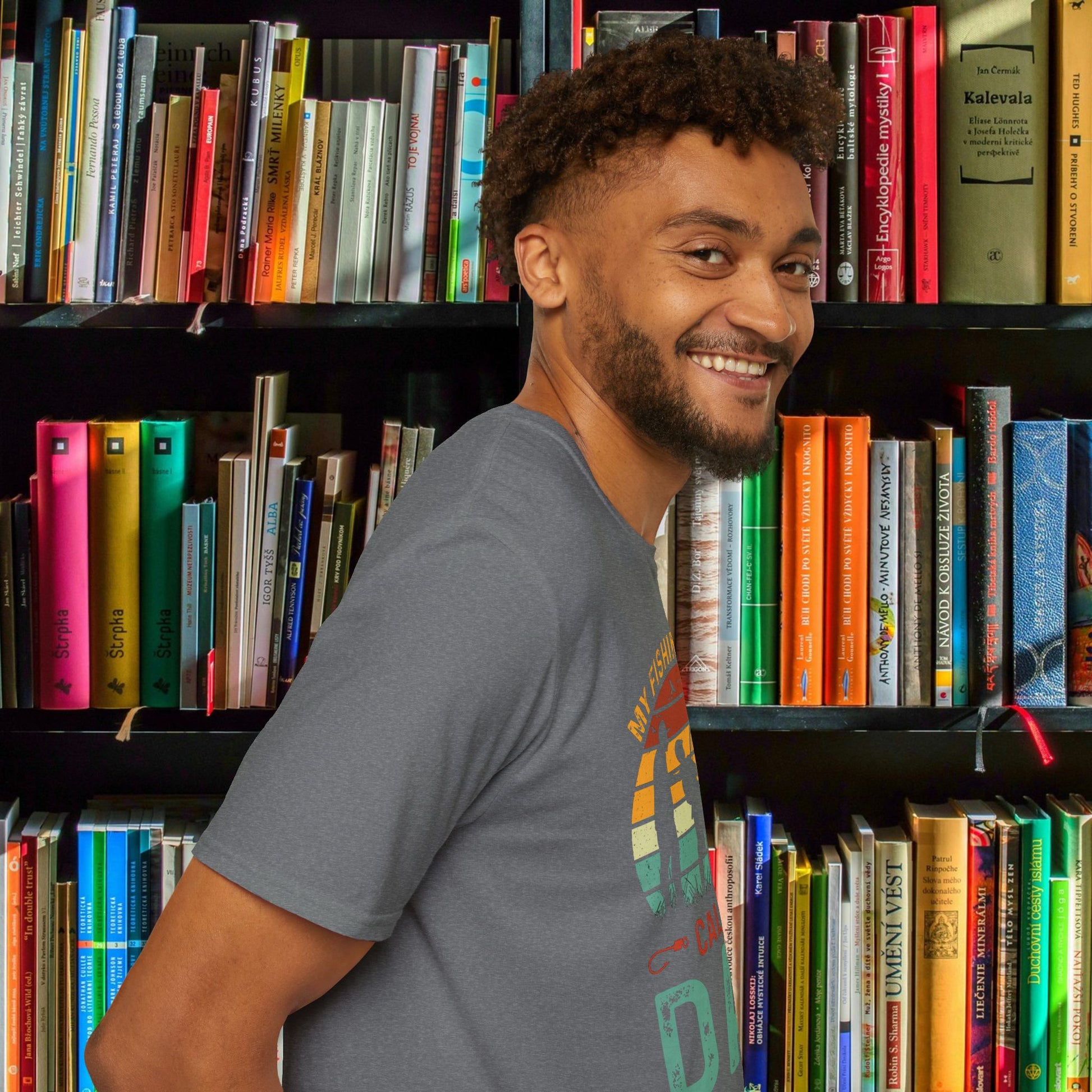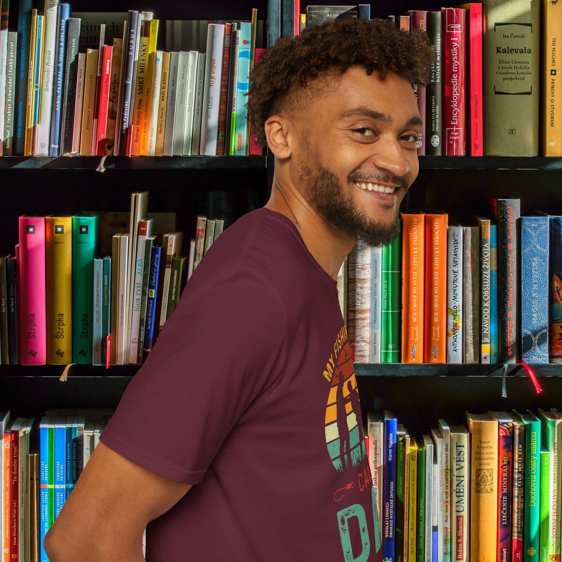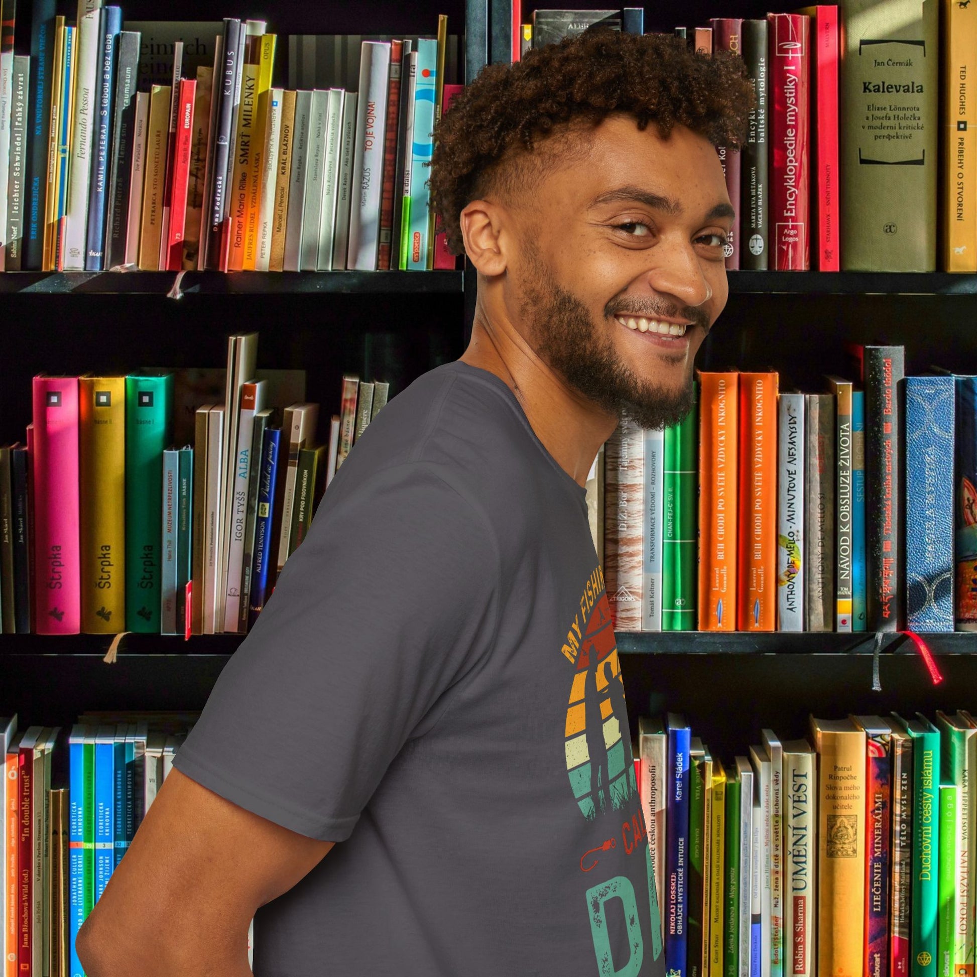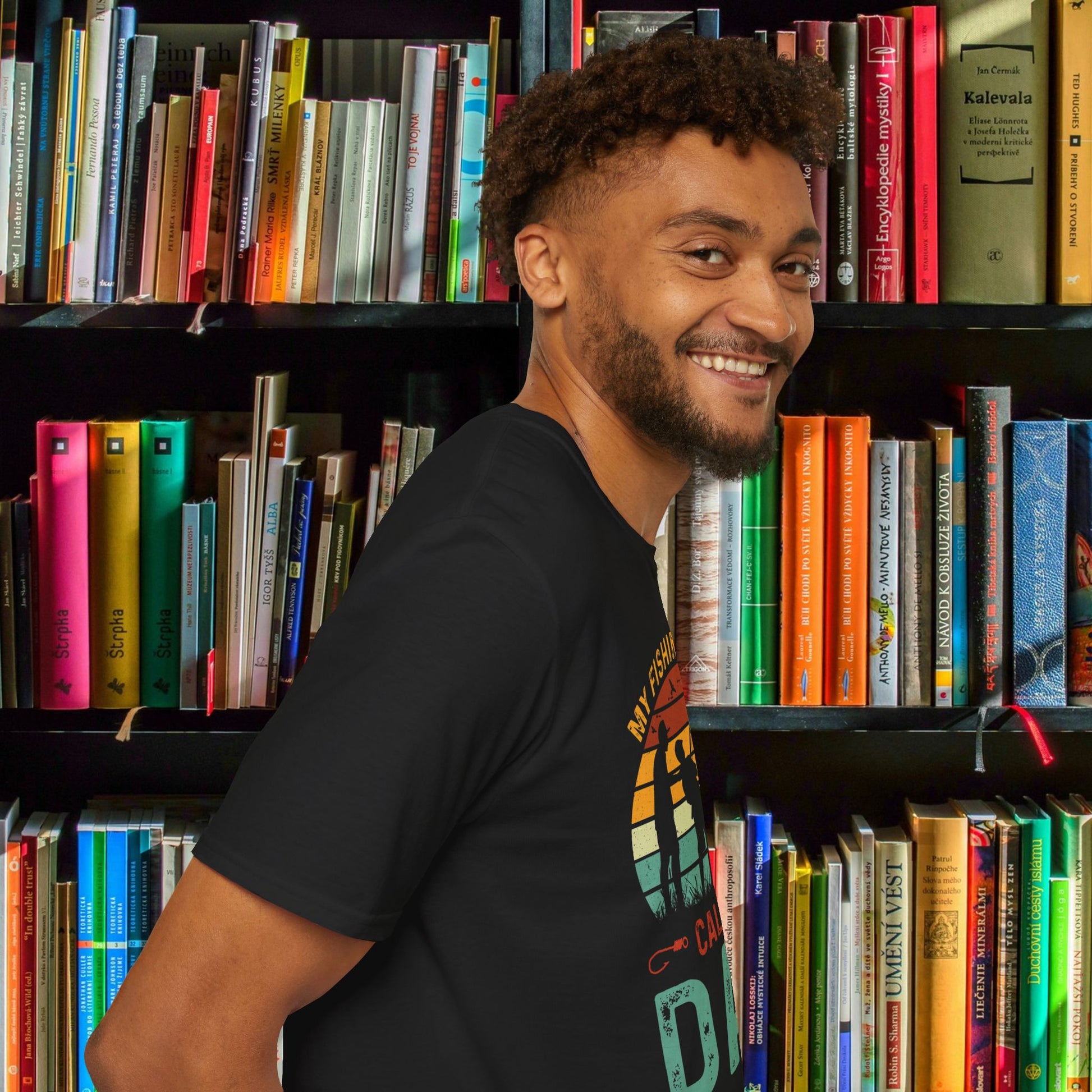 Let's go fishing! The unisex soft-style t-shirt puts a new spin on casual comfort. Made from very soft materials, this tee is 100% cotton for solid colors. Heather colors and sports grey include polyester. The shoulders have twill tape for improved durability. There are no side seams. The collar is made with ribbed knitting to prevent curling damage.
