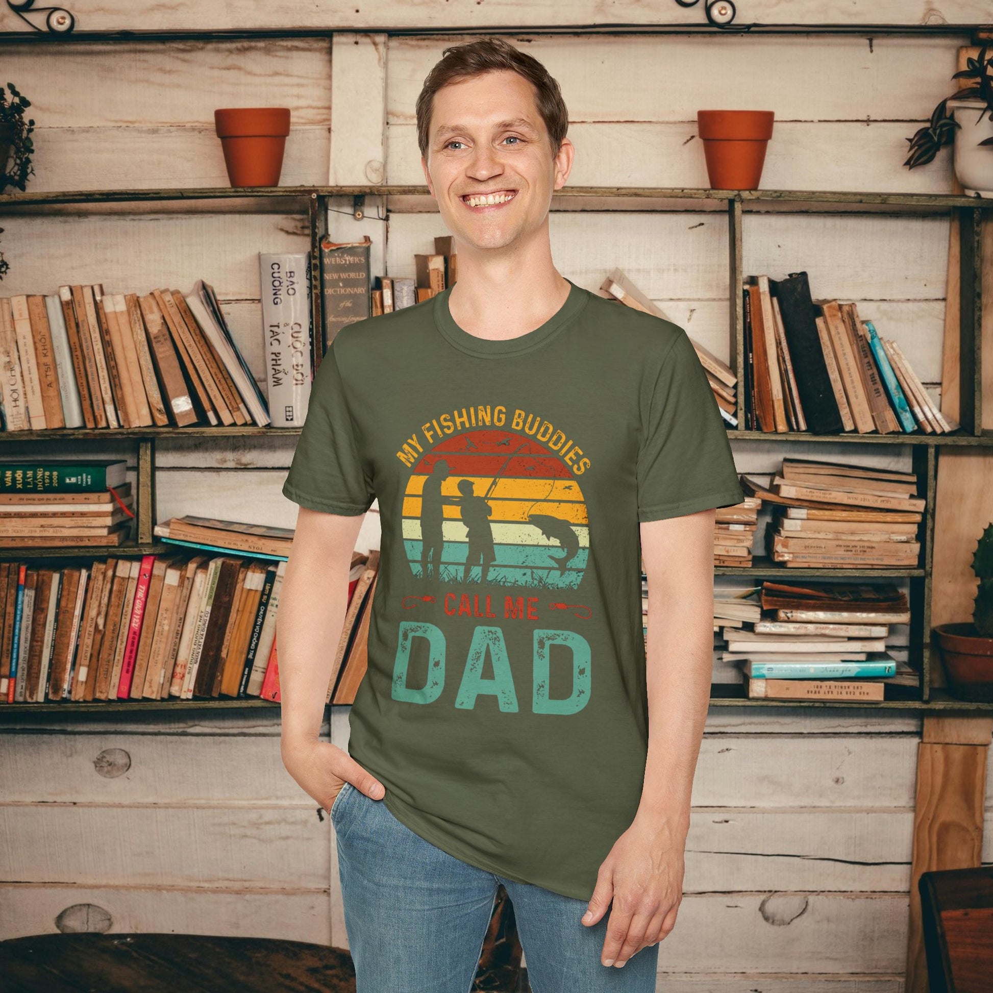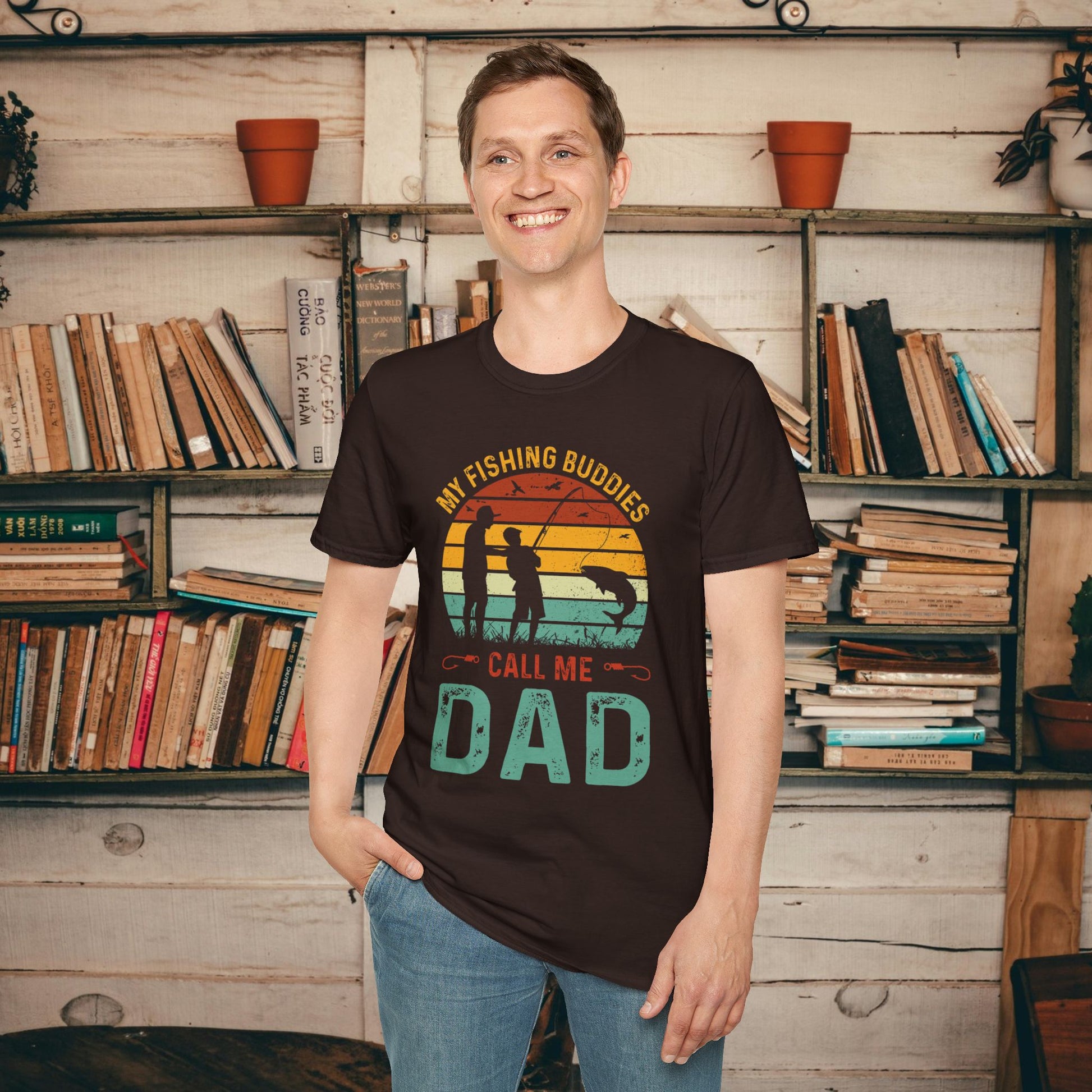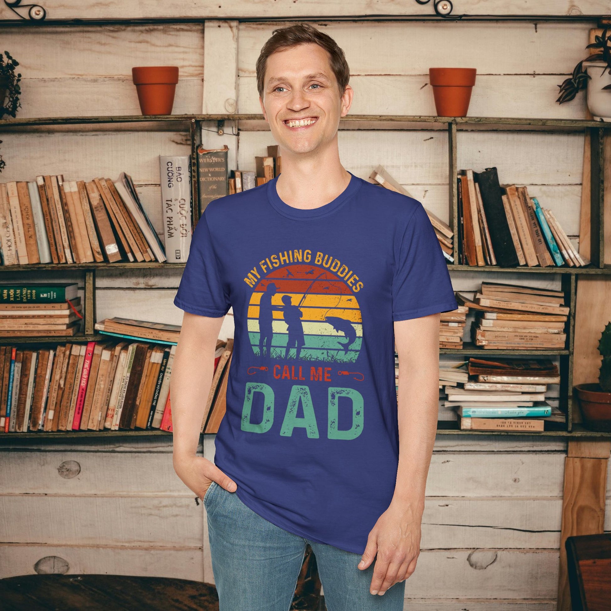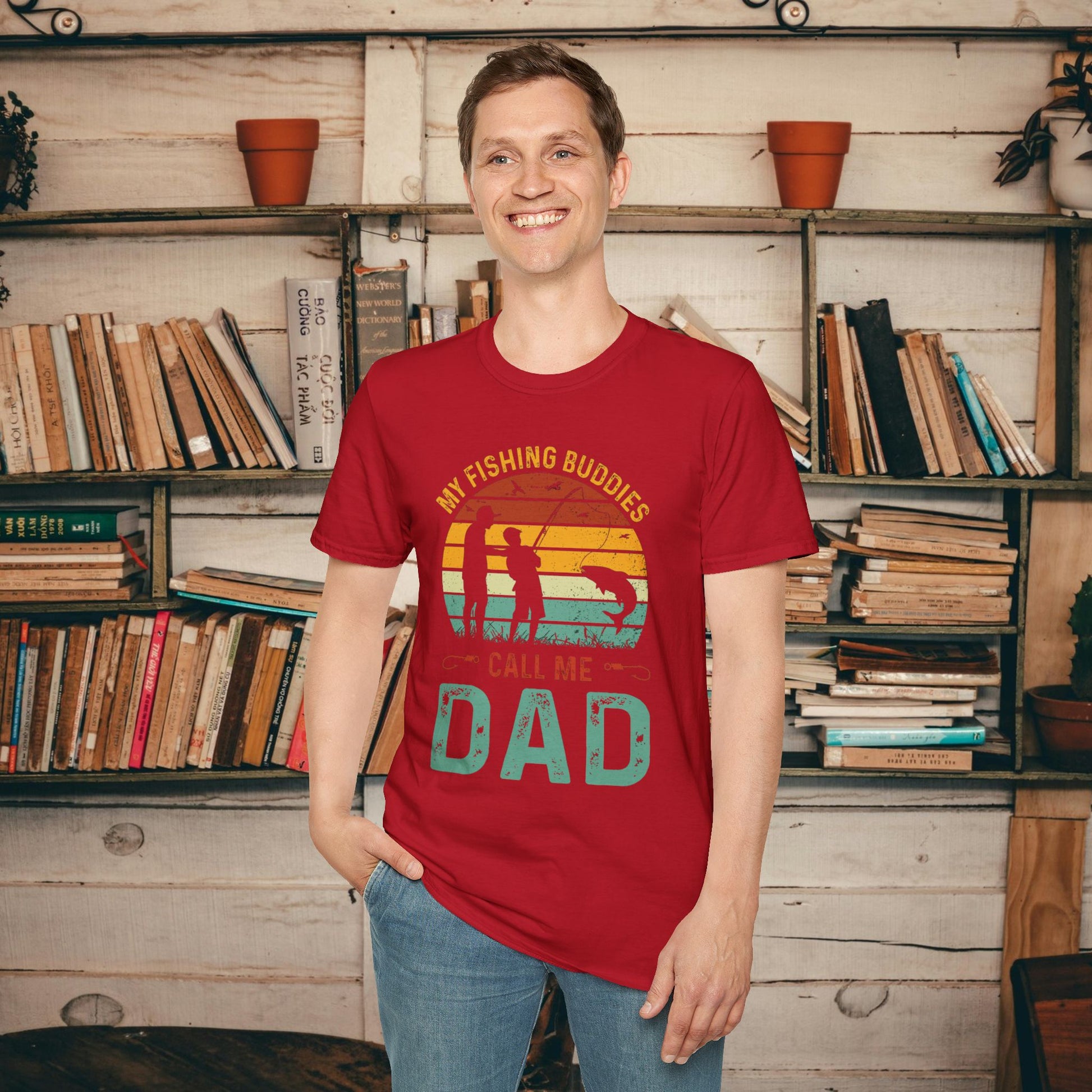 Let's go fishing with dad! A great gift for a great person! The unisex soft-style t-shirt puts a new spin on casual comfort. Made from very soft materials, this tee is 100% cotton for solid colors. Heather colors and sports grey include polyester. The shoulders have twill tape for improved durability. There are no side seams. The collar is made with ribbed knitting to prevent curling damage.